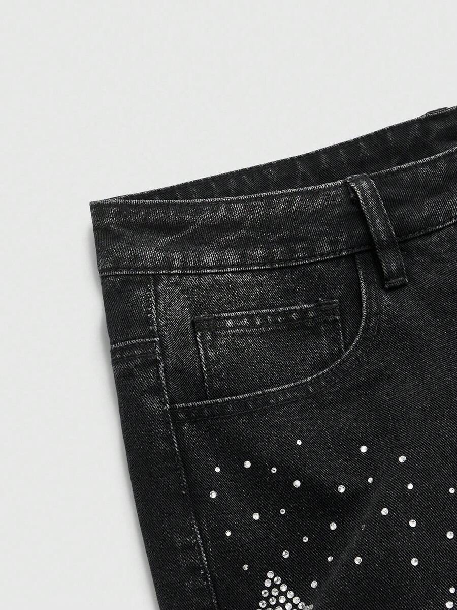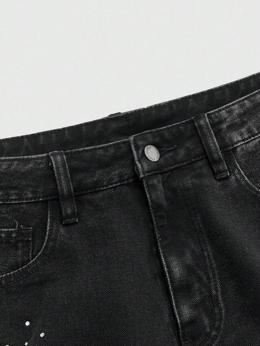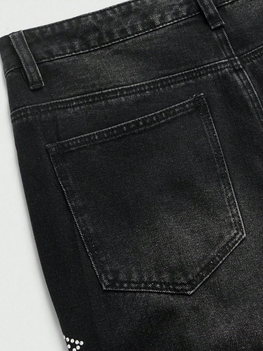 Goth Jeans de mode pour hommes avec poche ornée de strass en forme de croix