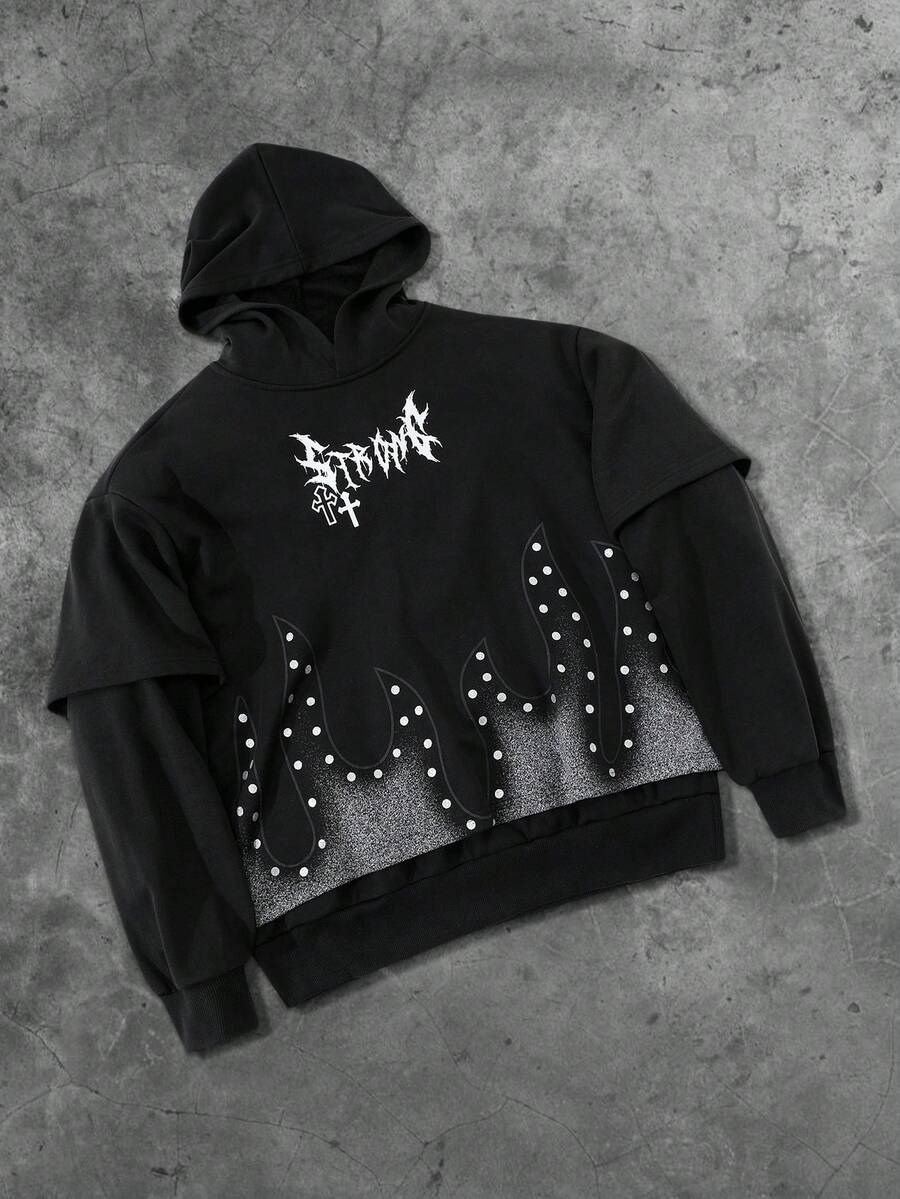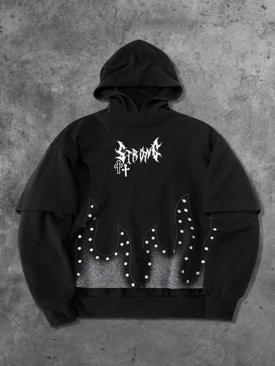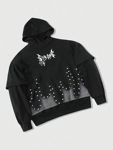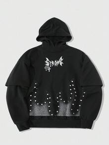 Goth Sweat-shirt noir à imprimé pointillé fin 2 en 1 pour homme, convient pour un port quotidien en automne/hiver