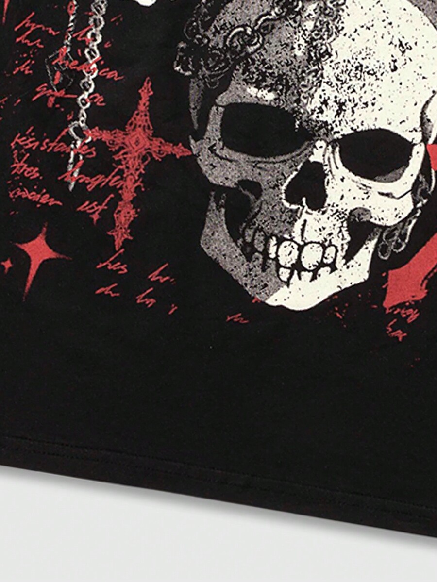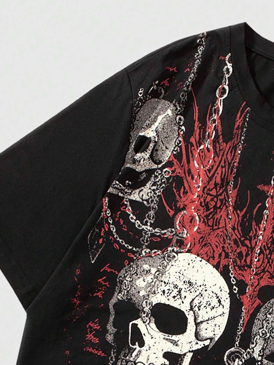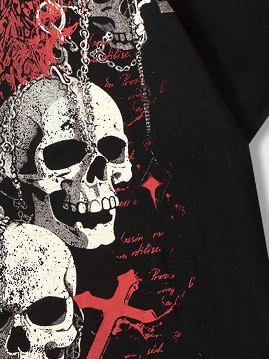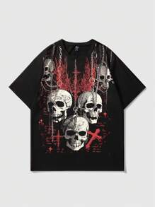 Goth T-shirt à manches courtes à imprimé gothique pour hommes, avec squelette, convient pour un port quotidien au printemps et en été, école