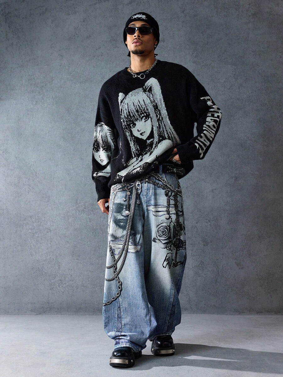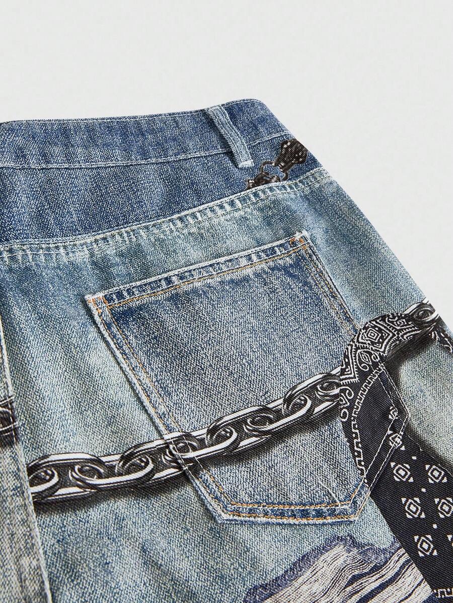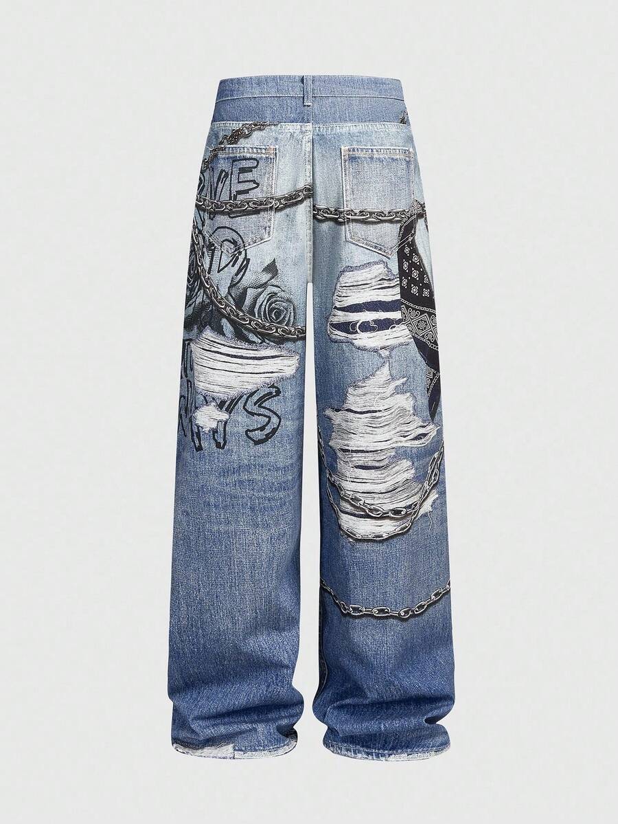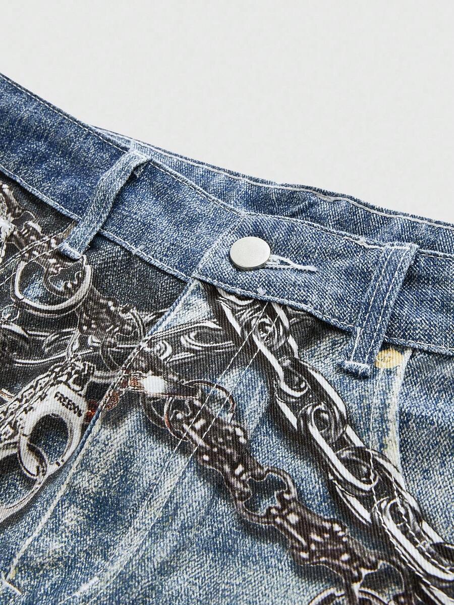 Goth Jeans mode de rue ample avec motif de chaîne de jambe large pour hommes