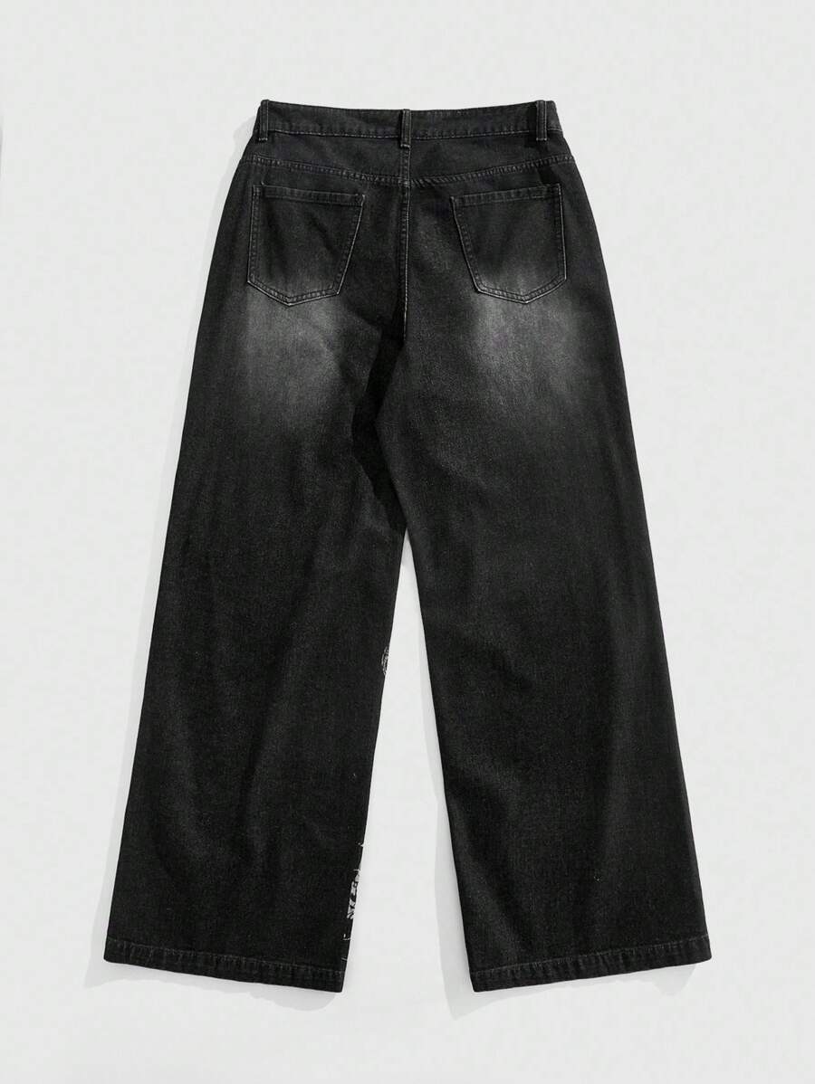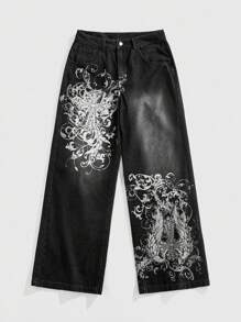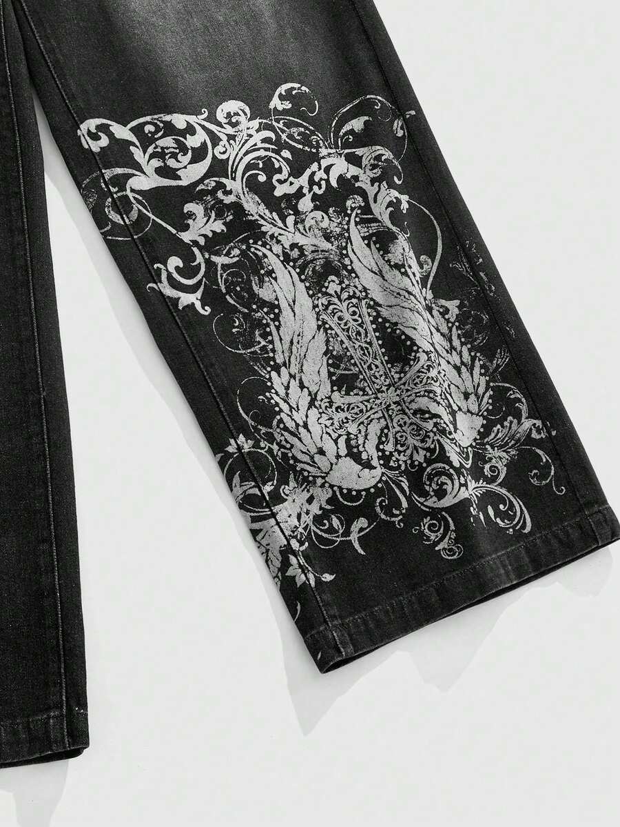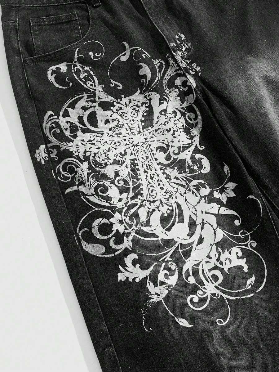 Goth Jeans larges streetwear amples pour hommes avec imprimé floral et croix, style grunge