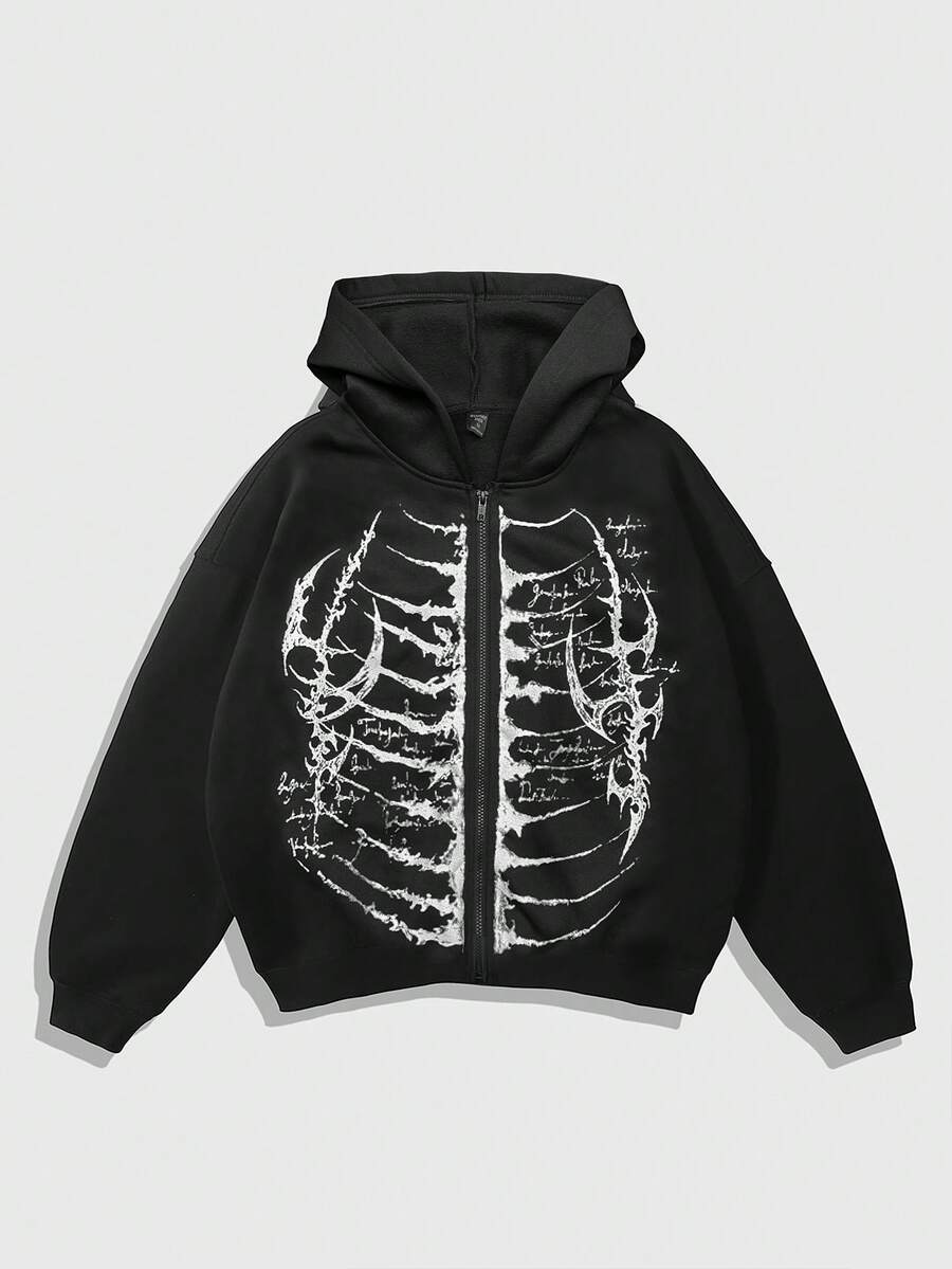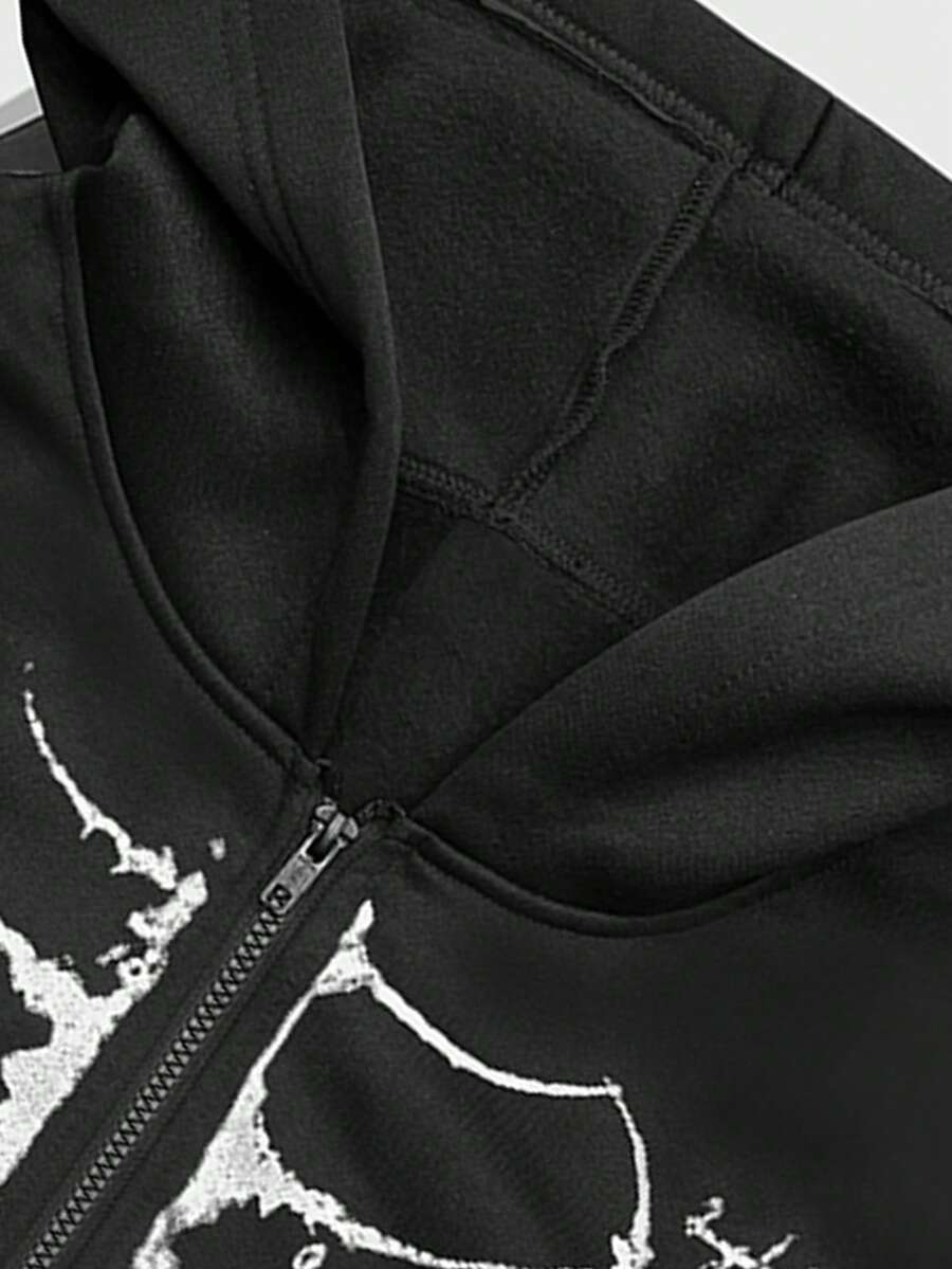 Goth Sweat-shirt à capuche zippé à manches longues imprimé squelette décontracté pour homme, pour l'hiver