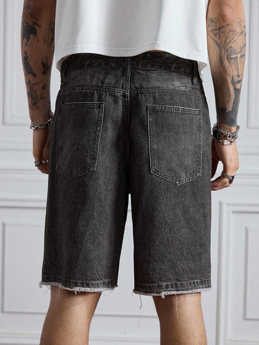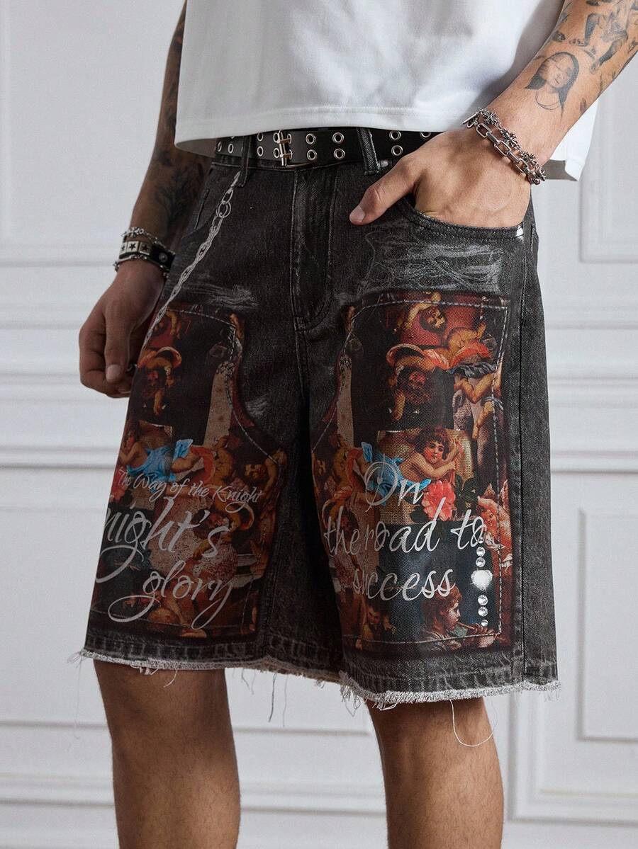 Goth Shorts en denim décontractés pour hommes avec lettre et chiffre graphique, ourlet effiloché et poche