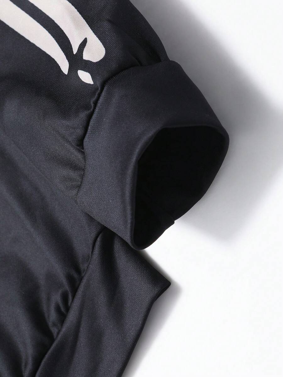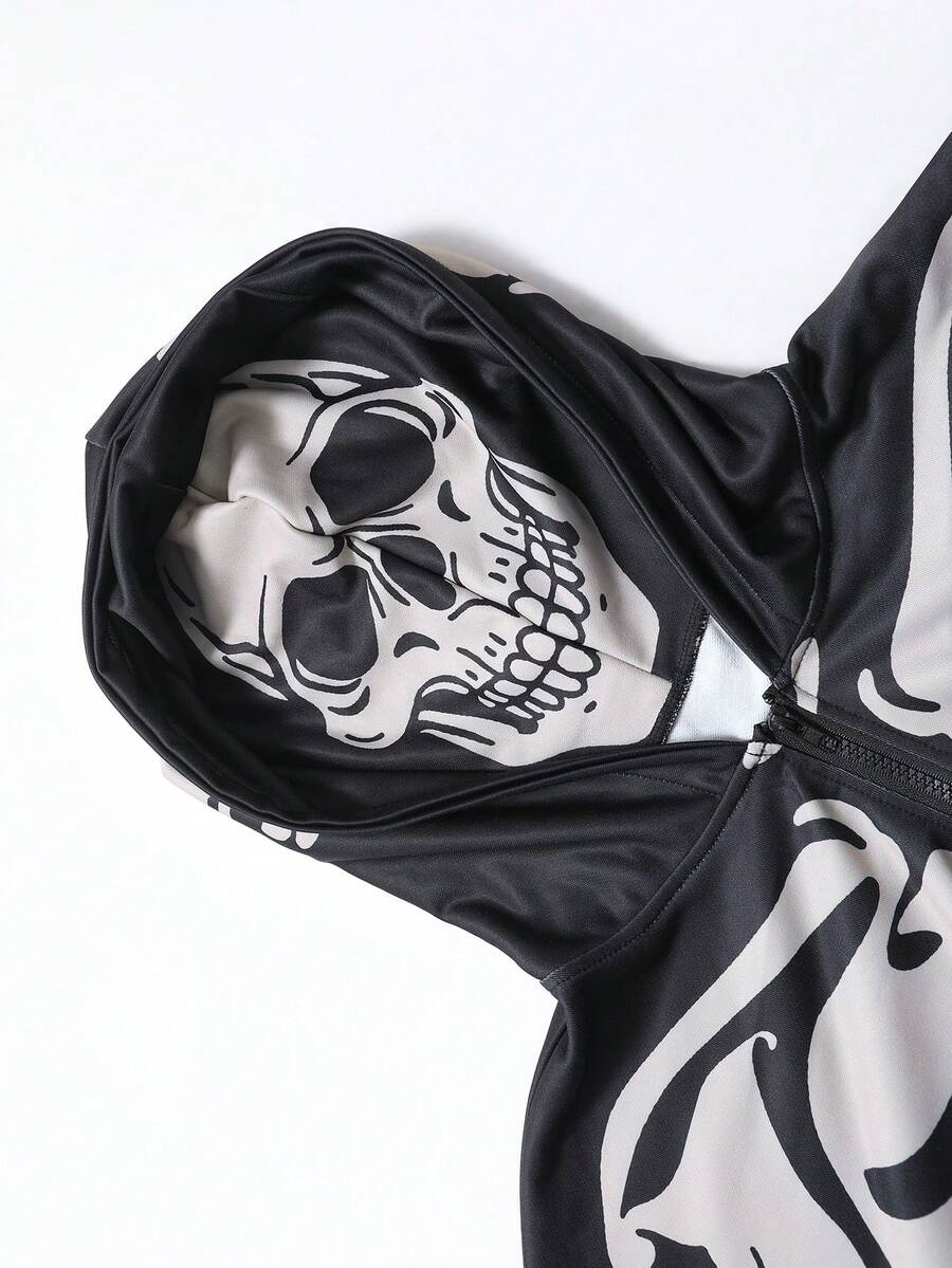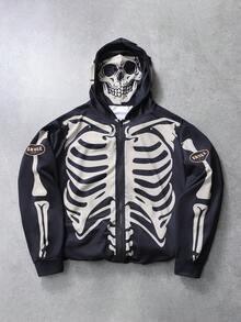 Goth sweat-shirt à capuche zippé pour hommes, imprimé crâne et squelette, design graphique sombre avec un impact visuel puissant, destiné aux marchés européen et américain pour des éléments personnalisés et audacieux. Le design du sweat-shirt à capuche zippé est décontracté mais polyvalent, avec un matériau en tissu doux et confortable. Se porte bien avec un pantalon cargo pour un look sombre hardcore ou un pantalon décontracté pour une ambiance streetwear.