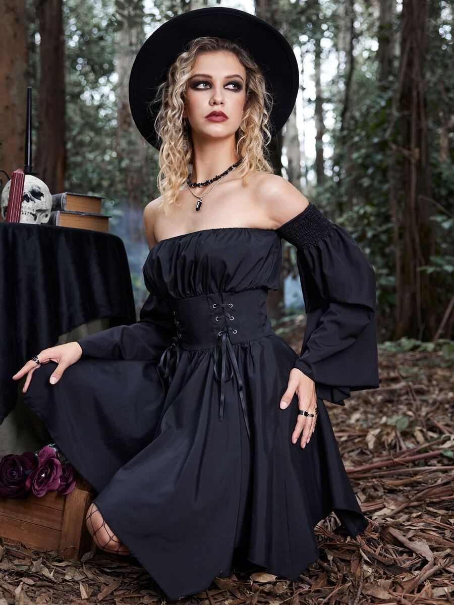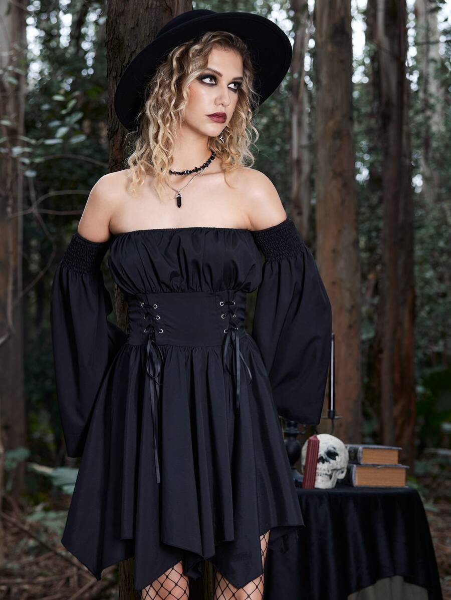 Goth Robe col bardot à lacets