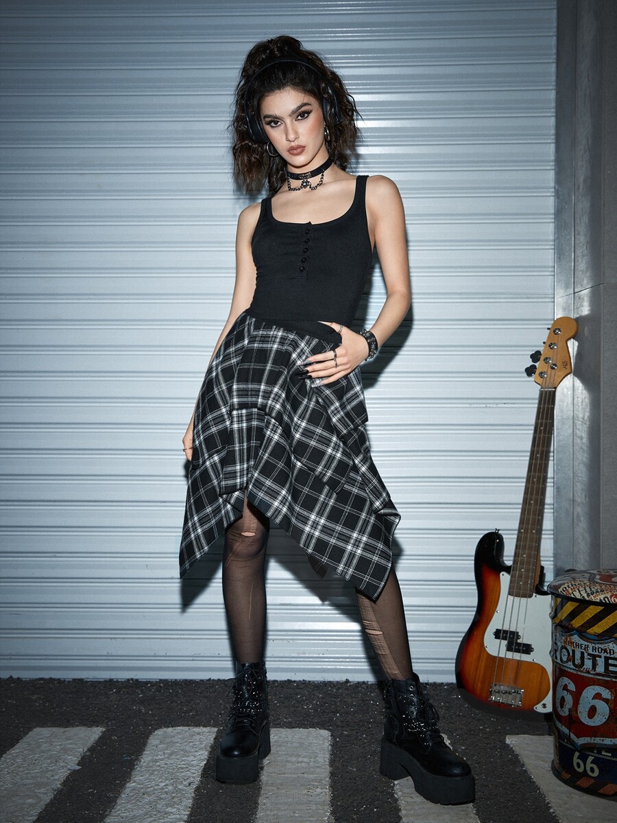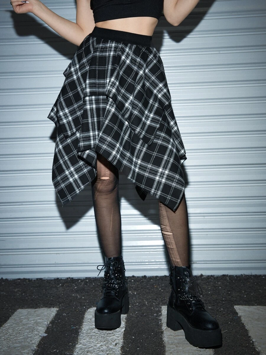 Jupe à carreaux asymétrique