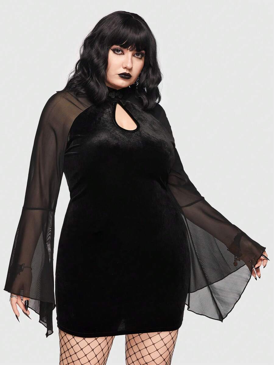 Goth Plus Robe Moulante Encolure Trou De Serrure Avec Tulle En Velours