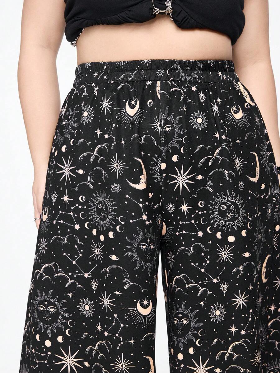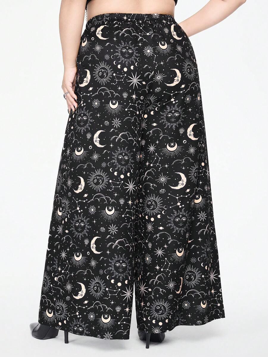 Goth Pantalon large à imprimé étoile mystique et lune, coupe ample pour grandes tailles