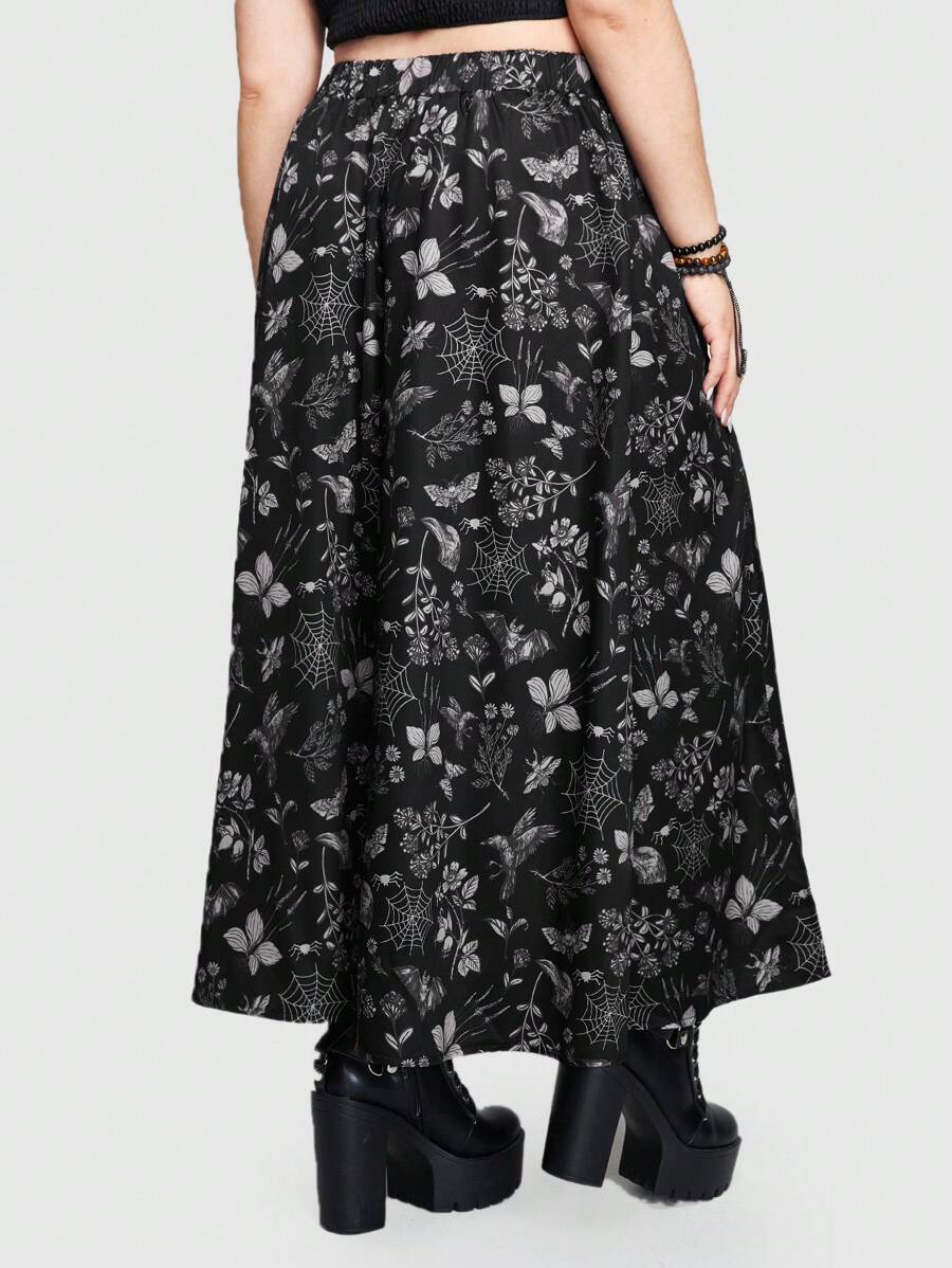 Goth Jupe Fente Haute Imprimé Plante Et Toile D'araignée Grande Taille Avec Décoration Nœud