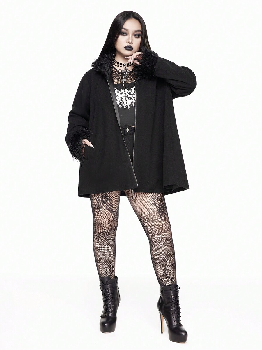 Veste ample gothique en patchwork de fourrure pour femmes grande taille, adaptée pour le Jour de Merci