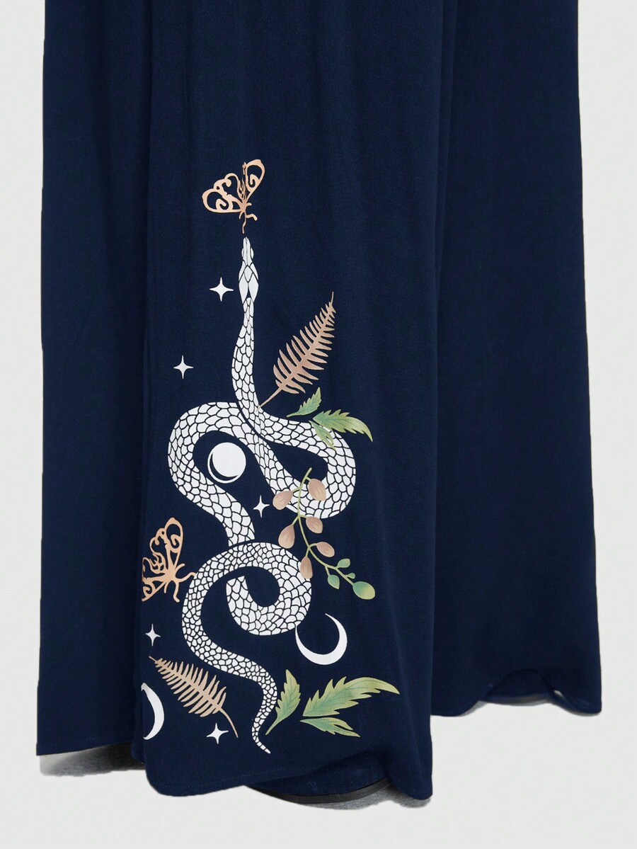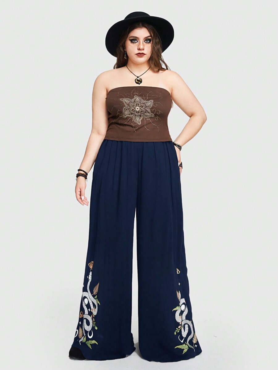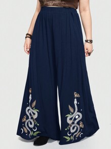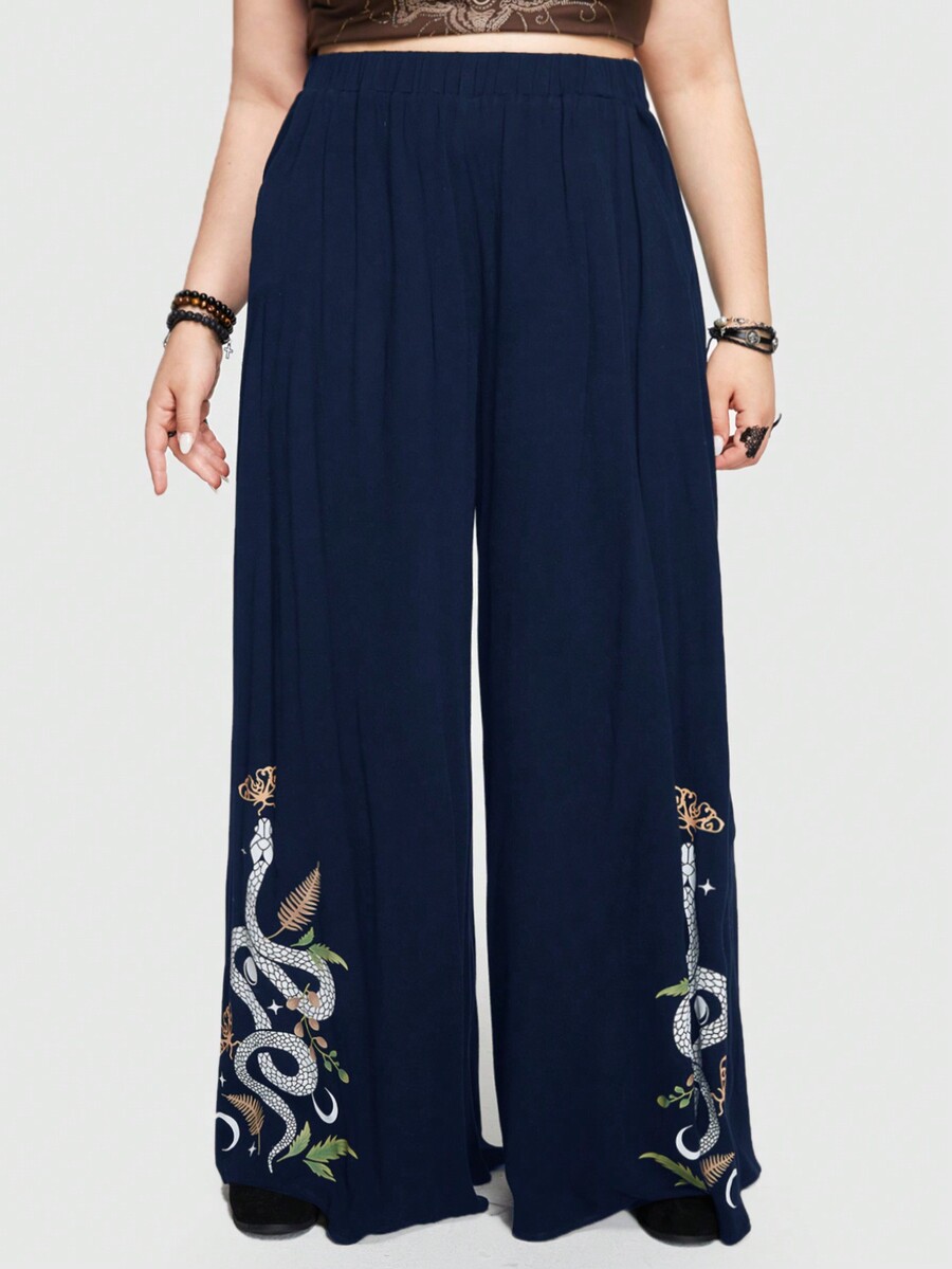 Goth Pantalon à jambes larges imprimé peau de serpent bleue et plante pour femme grande taille style de vacances d'été