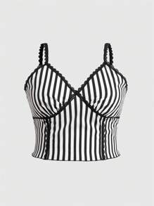 Goth Plus Top À Fines Brides À Rayures En Dentelle