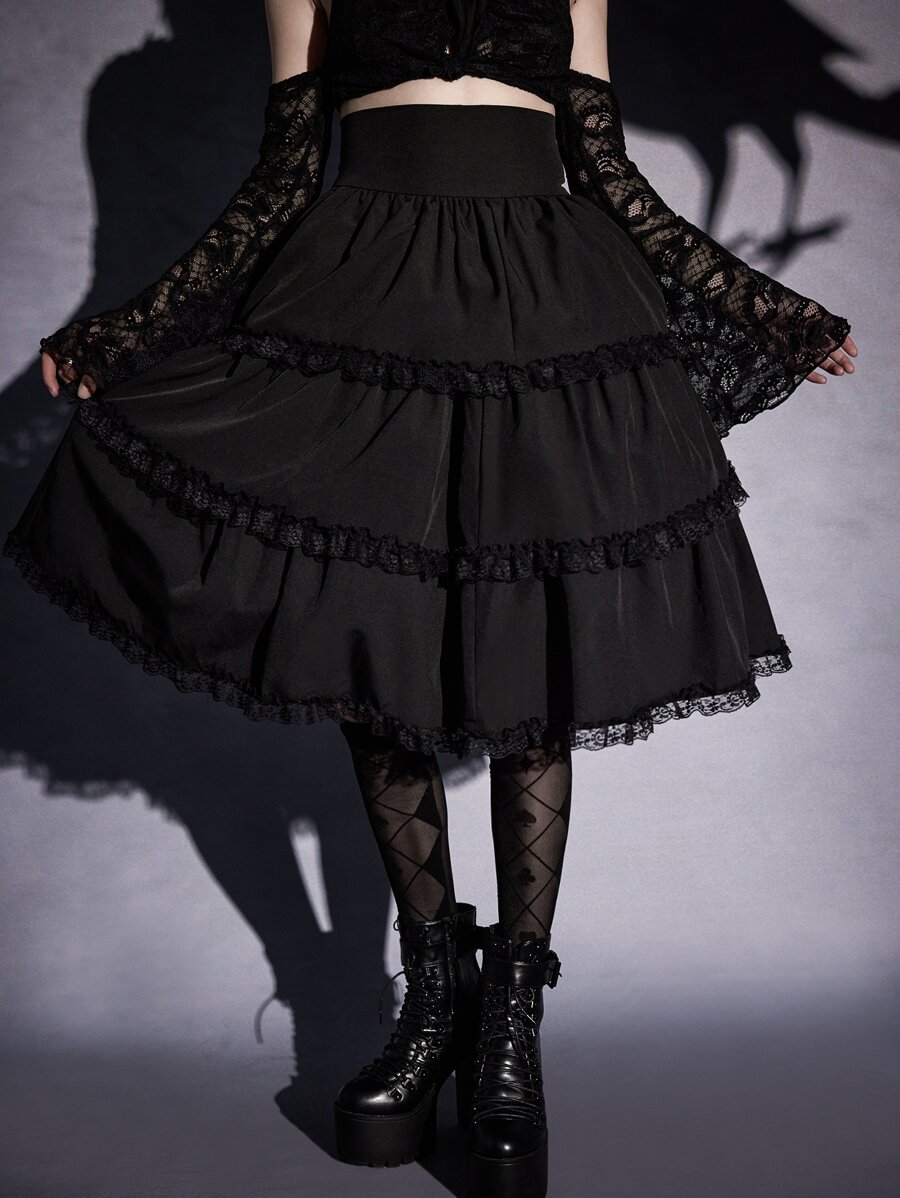Goth Jupe avec volant en dentelle contrastée Renaissance, école