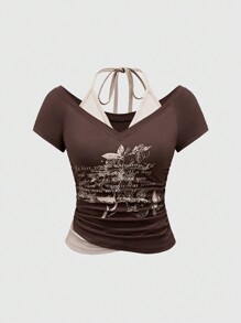 Goth T-shirt femme 2 en 1 à taille resserrée avec imprimé rétro