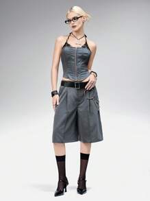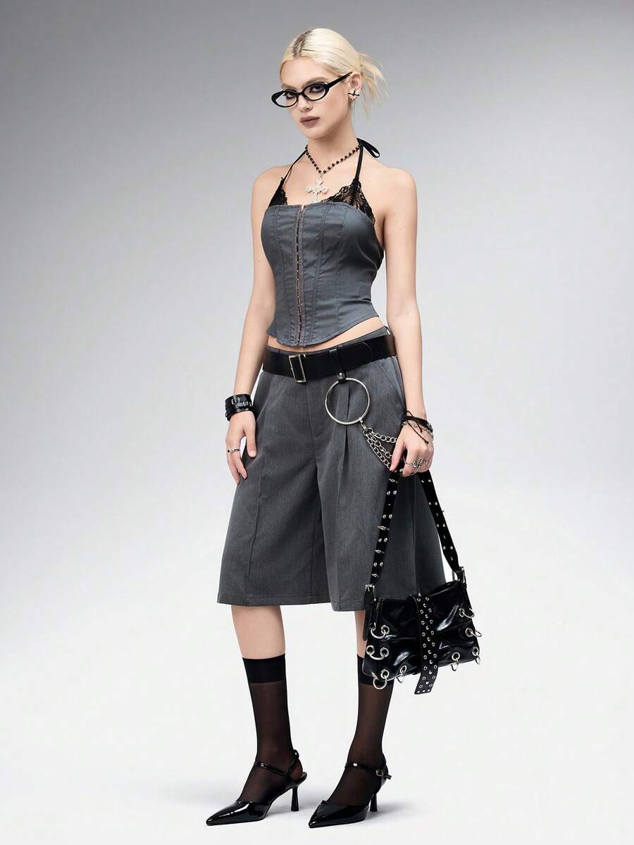 Goth Short taille basse ample style école à carreaux avec 5 poches, style Y2K rétro