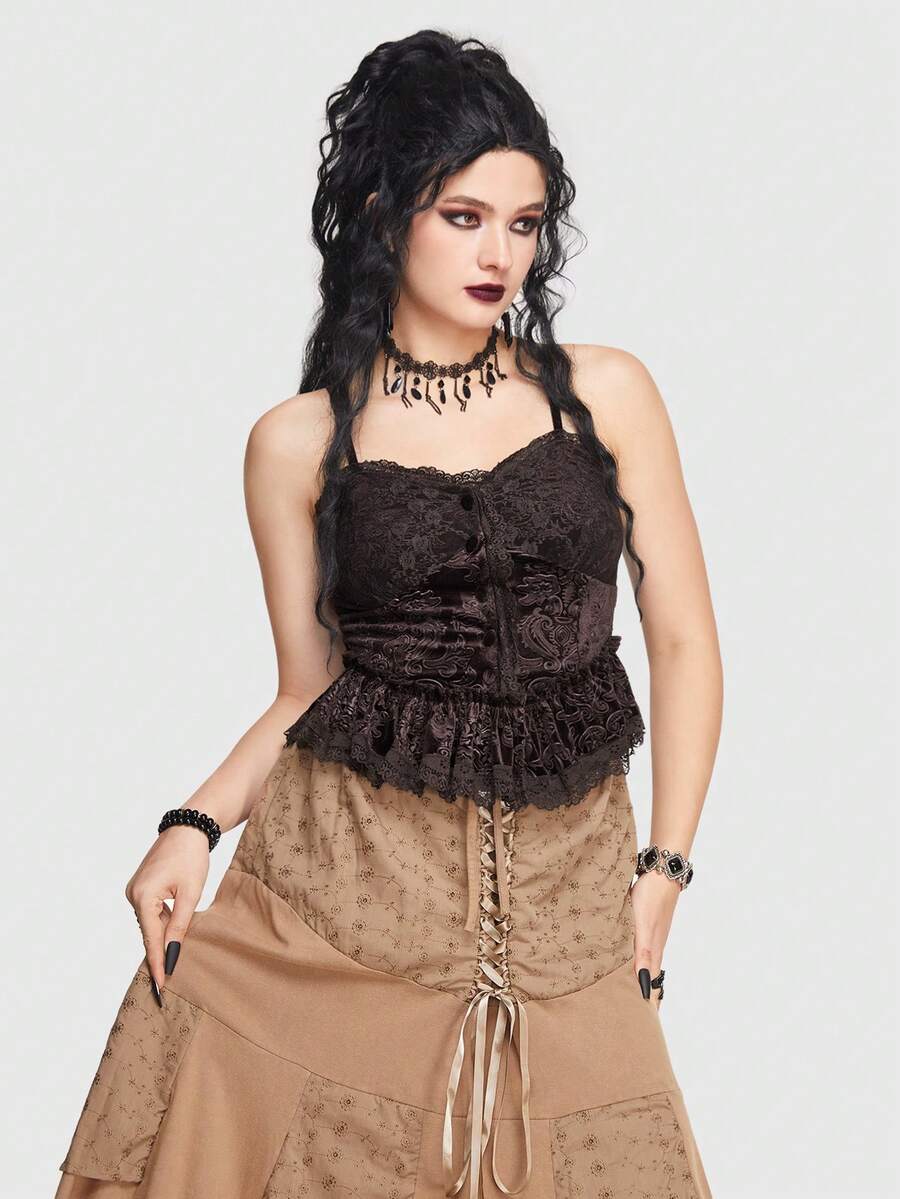 Goth Top À Fines Brides À Volants En Dentelle
