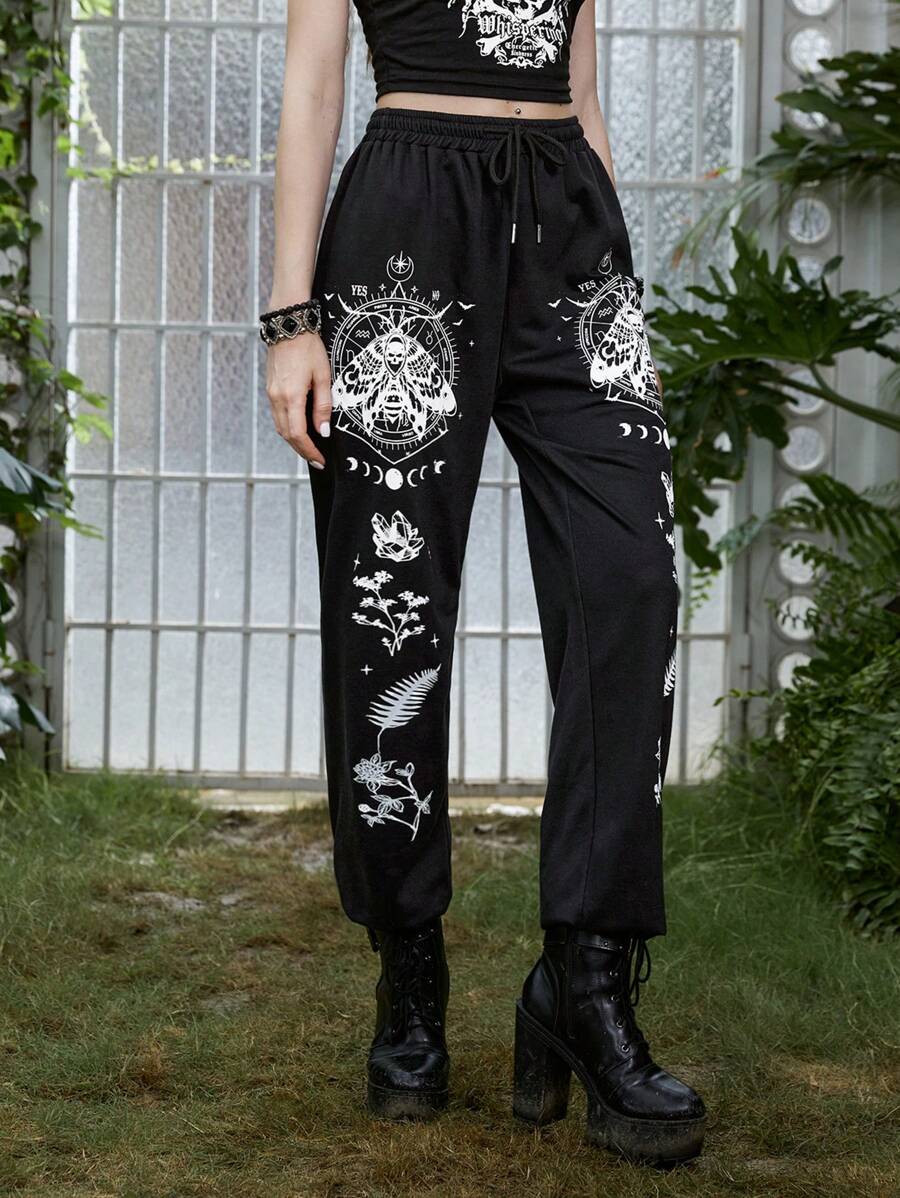 Goth Pantalon De Survêtement Motif Tête De Mort À Cordon
