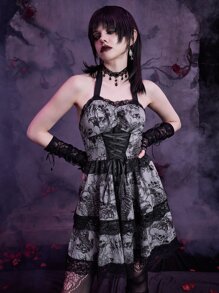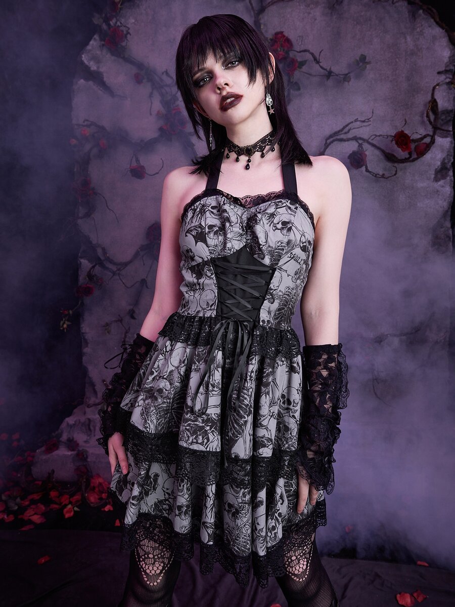 Goth Robe ras-du-cou à imprimé tête de mort à lacets