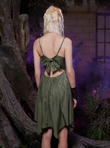 Goth Robe à fines brides unicolore à nœud au dos à volants