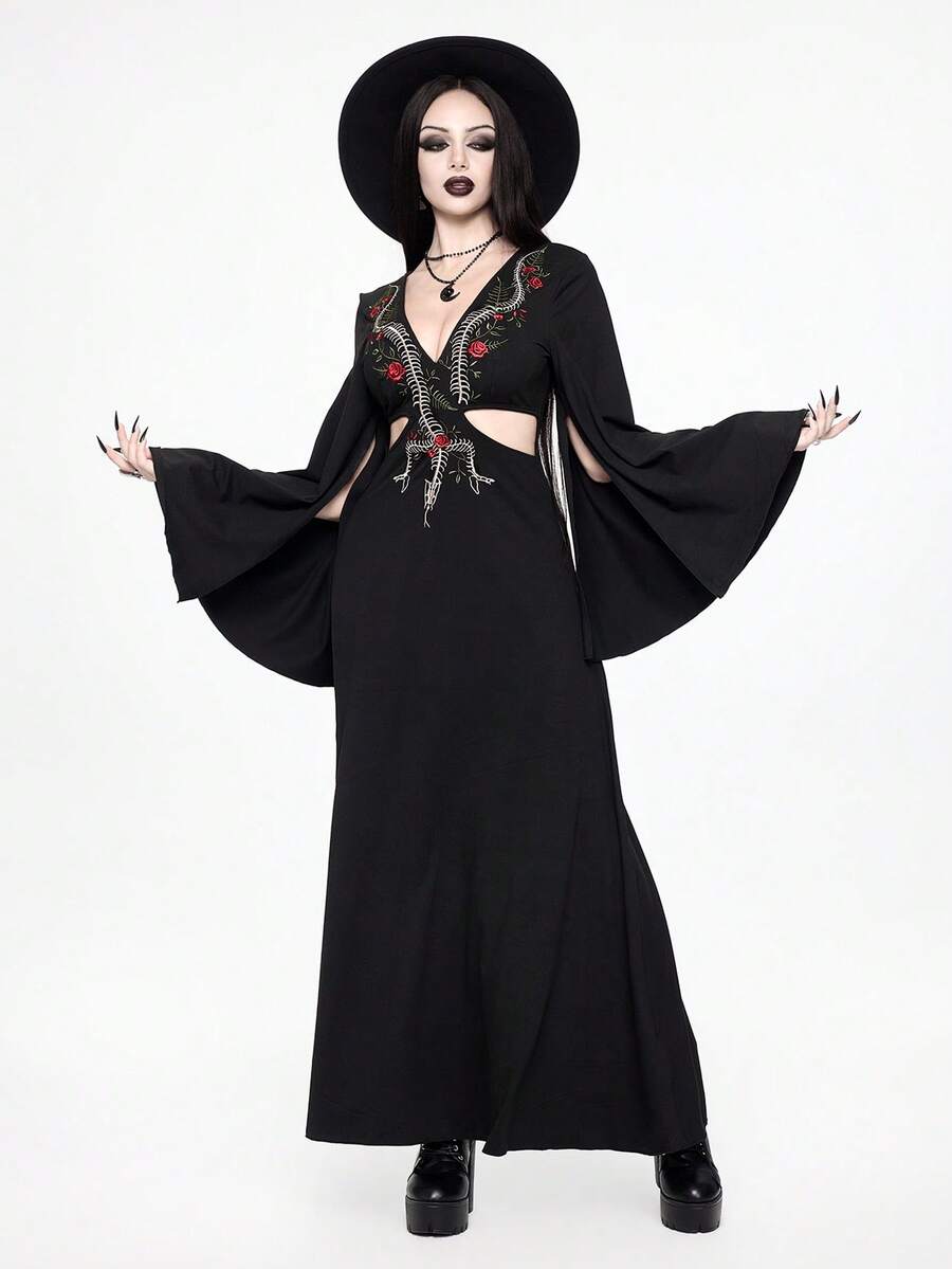 Robe évasée à manches évasées avec découpes de serpent et d'épines de la forêt interdite bohème gothique