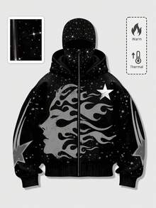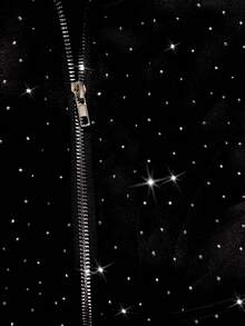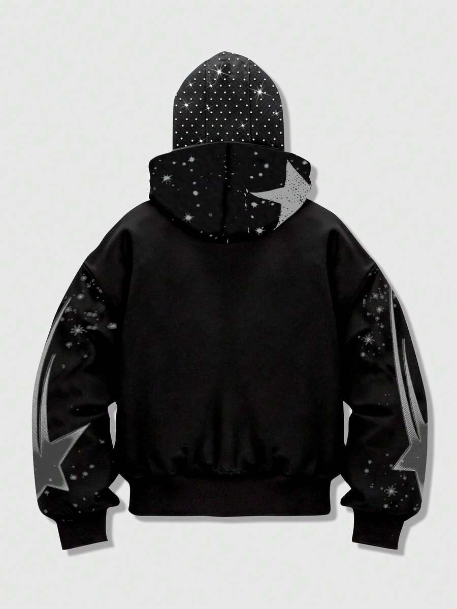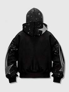 Goth Sweat-shirt-shirt zippé à capuche sombre et élégant avec ornements de strass pour hommes