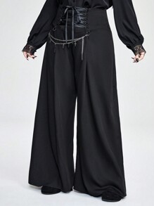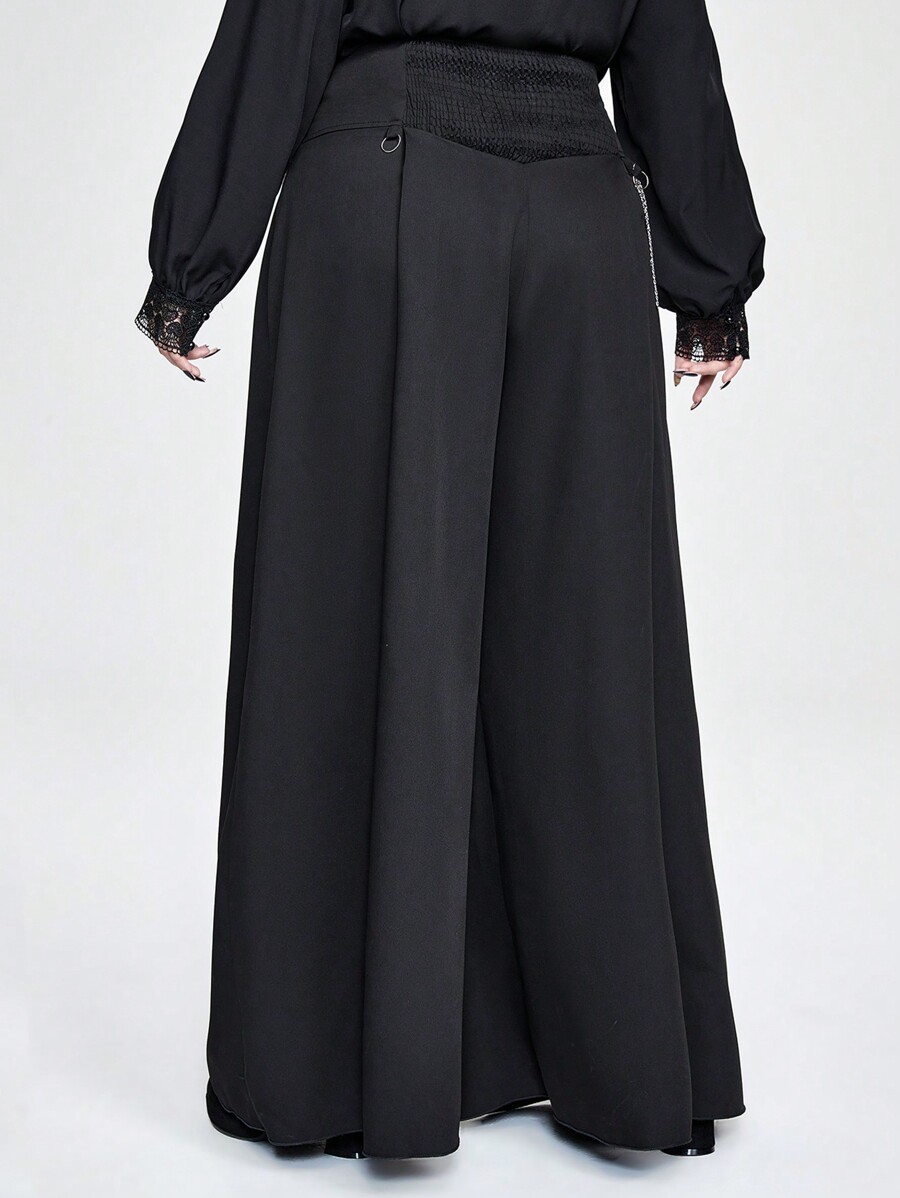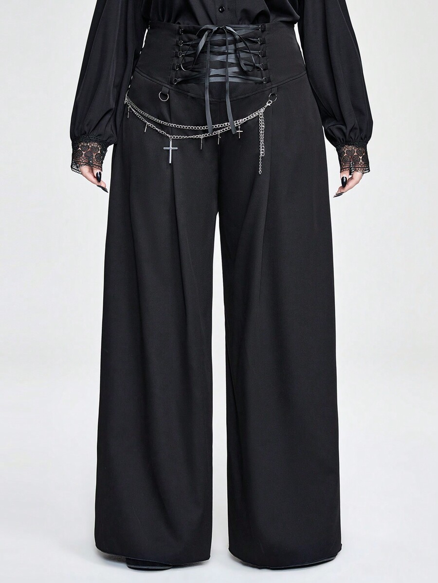 Pantalon large grande taille pour femmes avec décor de chaîne à taille haute et haute ajustée, style gothique vintage