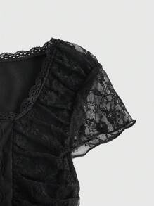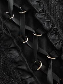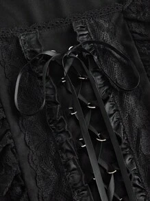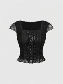 Blouse mince noire à lacets avec empiècement en dentelle de style gothique vintage pour femmes