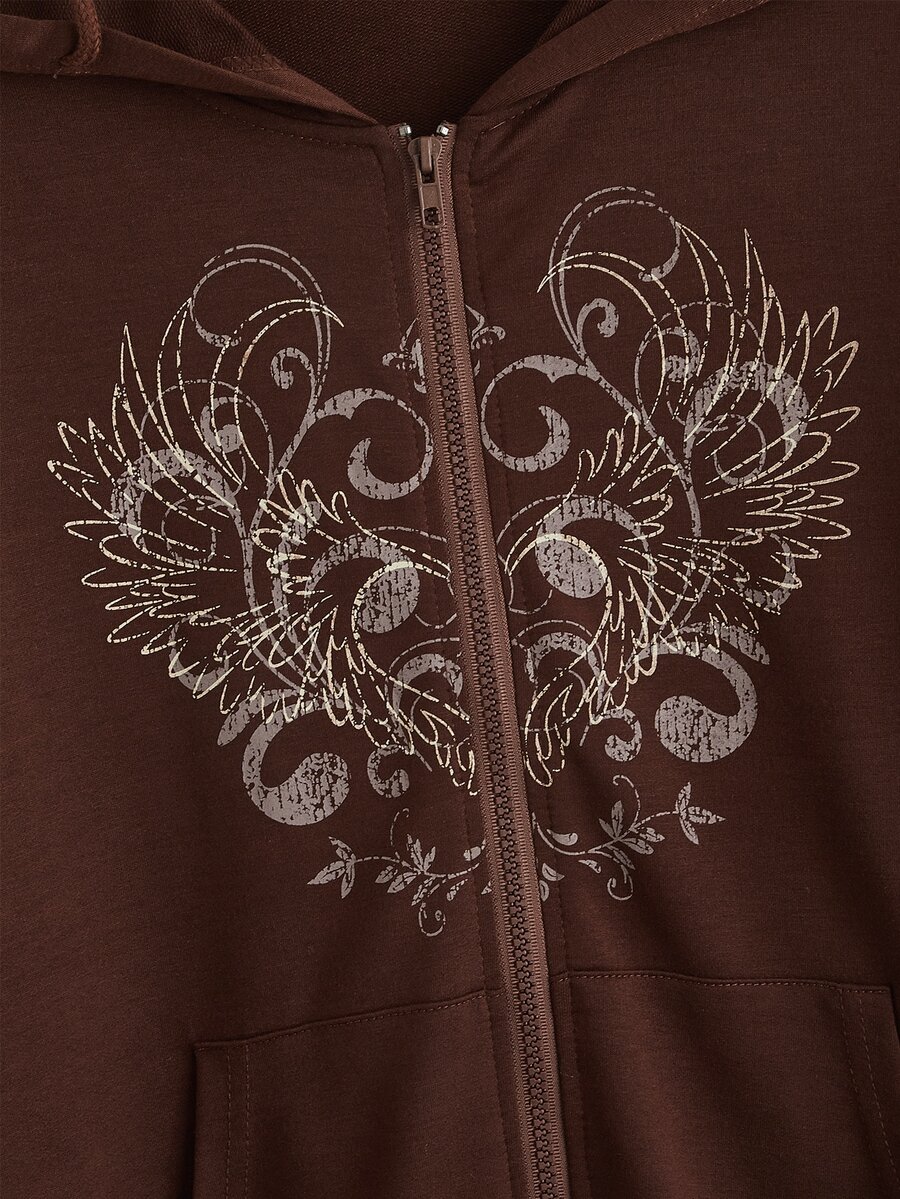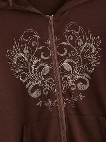 Goth Sweat-shirt à capuche aile graphique à poche zippé à cordon