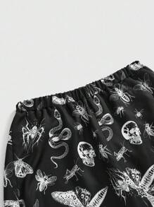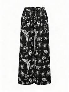 Goth Pantalon ample à taille élastique et jambes larges avec motif imprimé de papillon sombre, Halloween