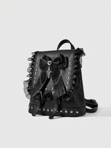 Goth Sac à dos de style punk pour femmes avec décoration de nœud et de rivets