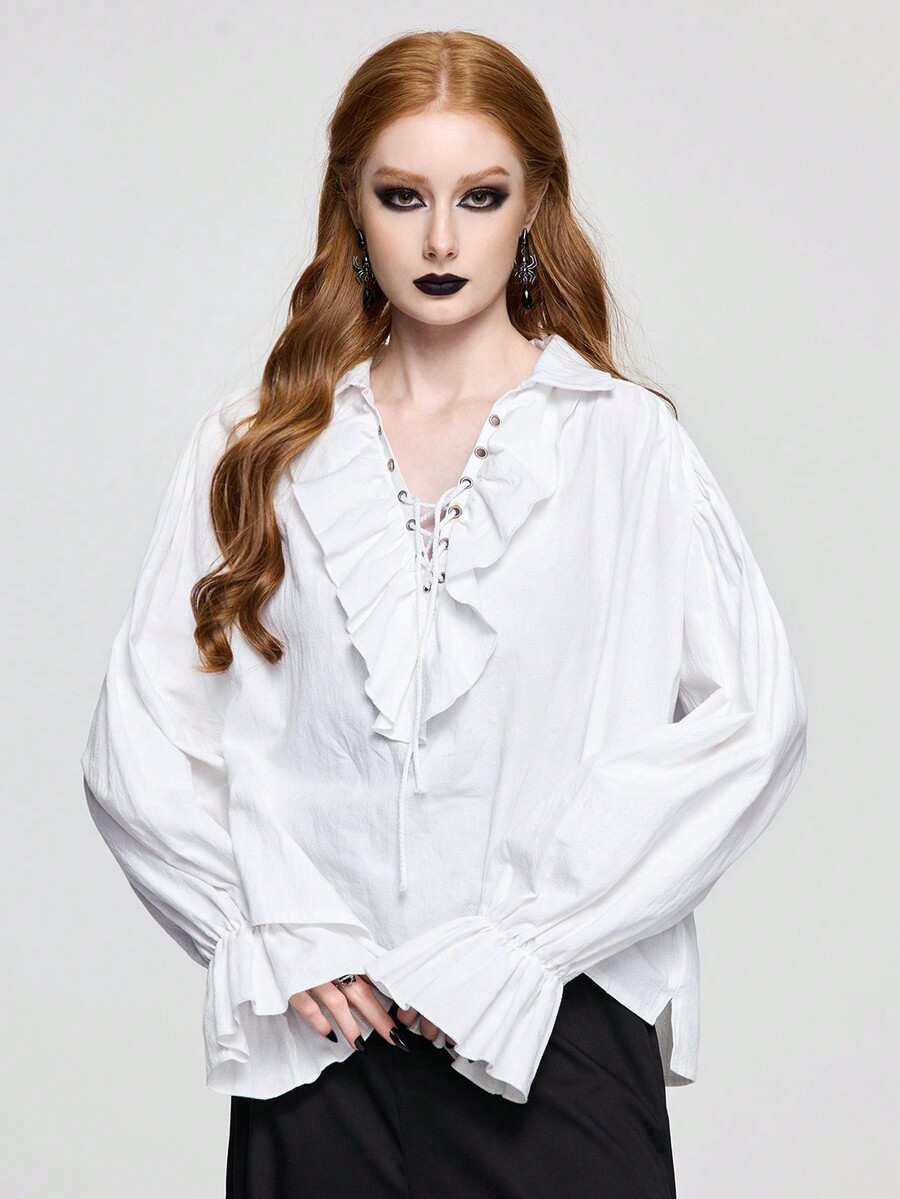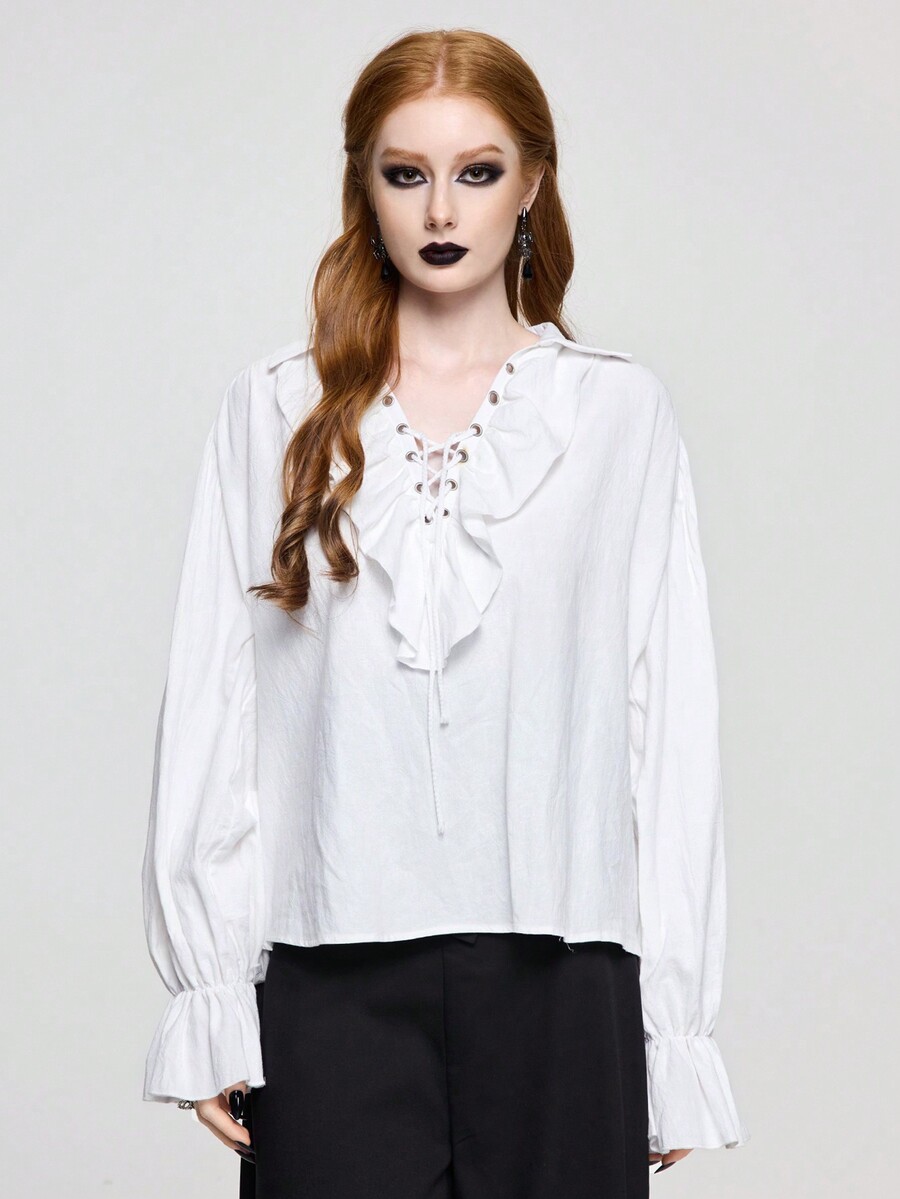 Goth Chemise à col en V drapé rétro de style palais avec cordon de serrage pour femmes