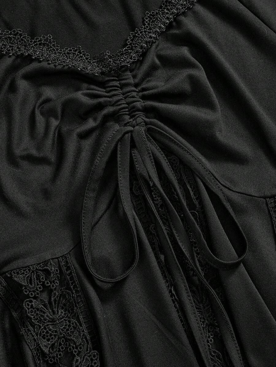 Goth Chemise à manches évasées avec dentelle vintage et découpes ajourées pour femmes, top style Renaissance pour Halloween