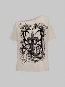 Goth T-shirt à manches courtes ample avec imprimé de vigne vintage déchiré, sous-culture punk grunge Y2K, pour le printemps/été