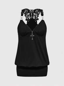 Goth Robe élégante avec col croisé en dentelle et dos nu, style rétro Y2K