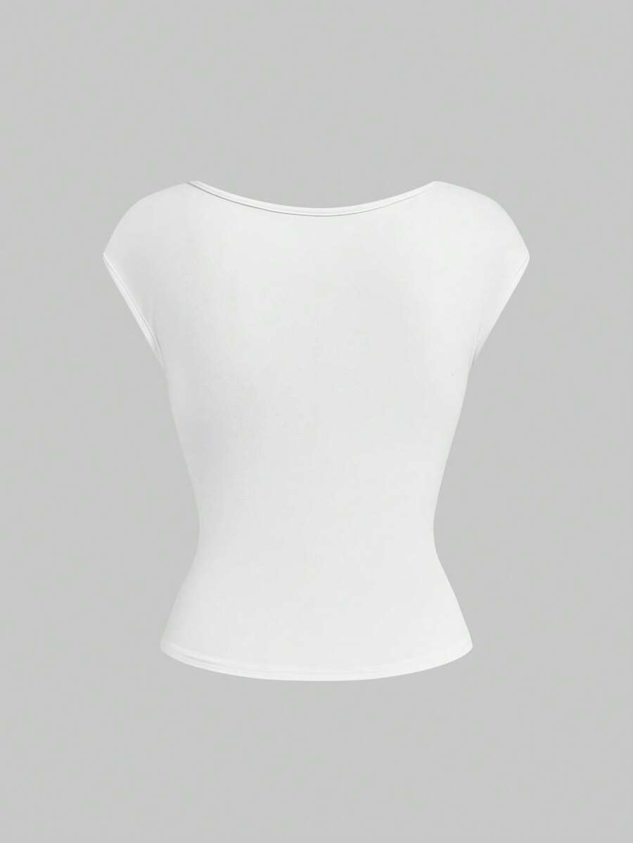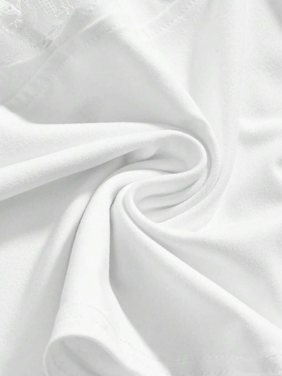 Goth T-shirt moulant et ajusté pour femmes avec taille froncée en dentelle contrastée, style polyvalent et sexy