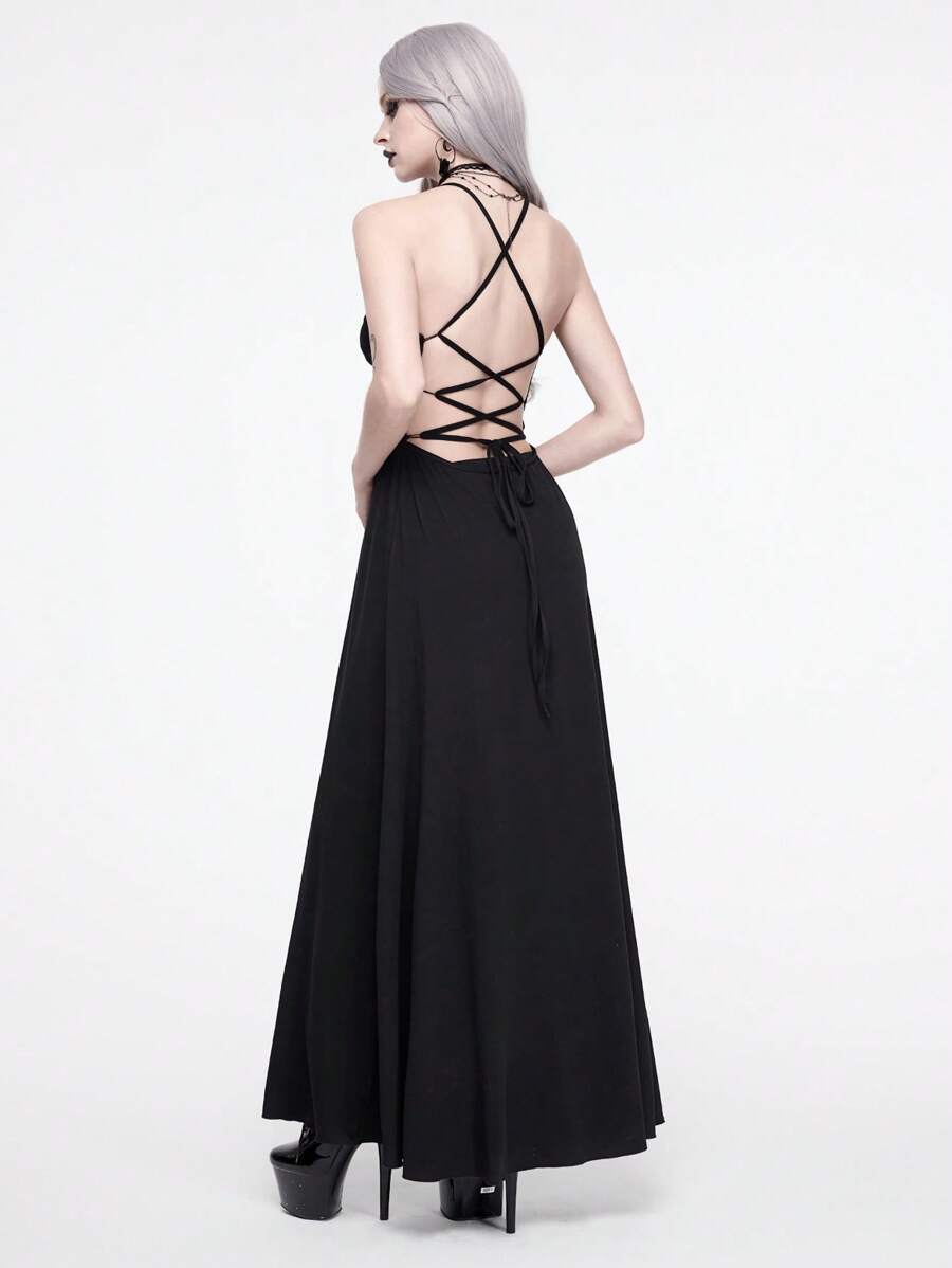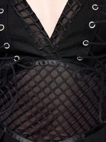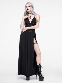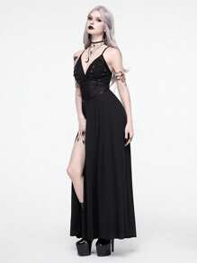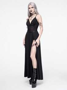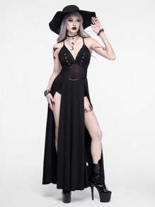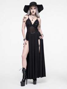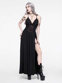 Robe de plage ample à patchwork de tulle, avec liens sur la poitrine et fente haute, dans le style vacances Y2K Goth