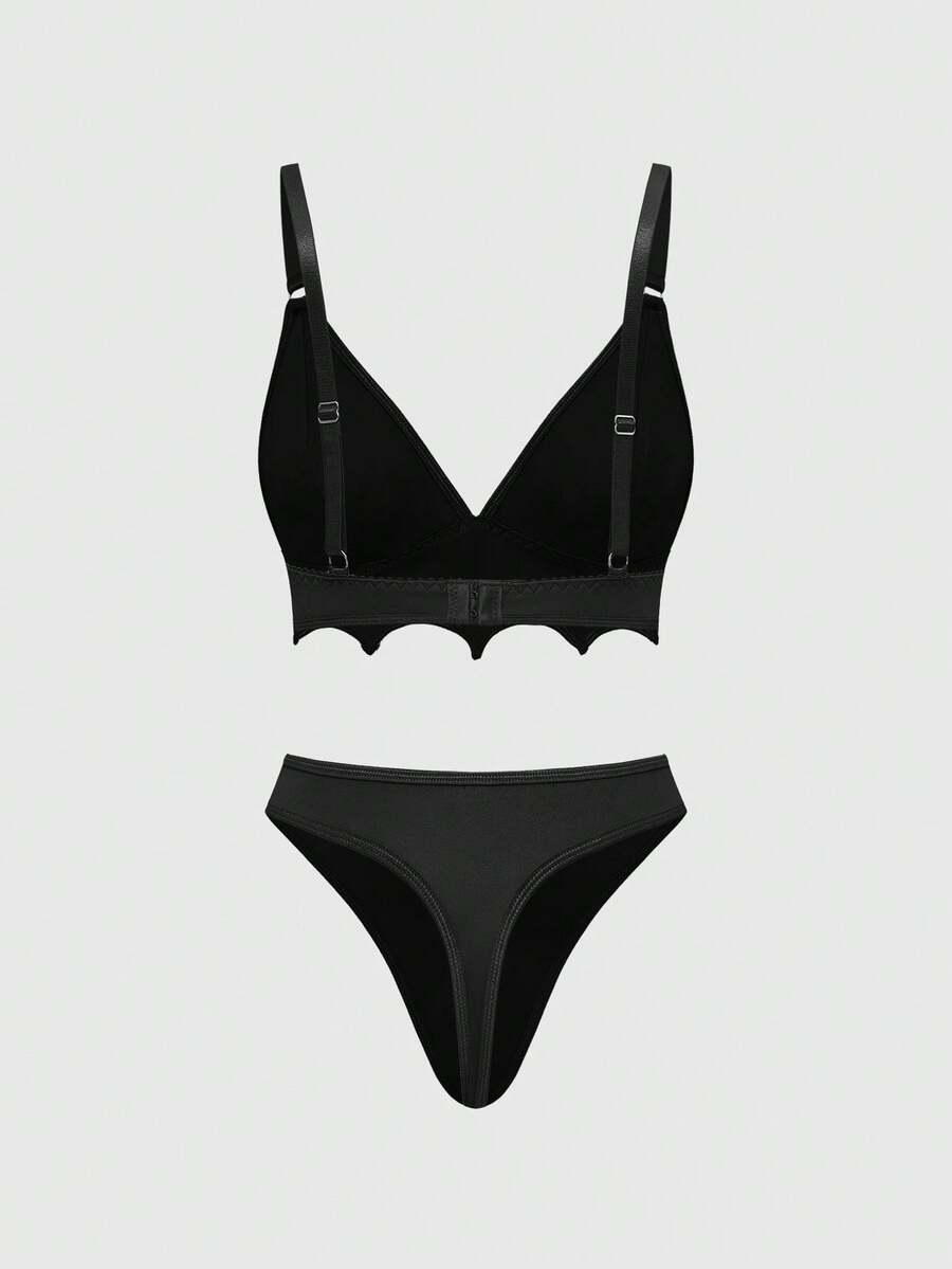 Ensemble de camisole et culotte en soie de lait avec garniture de chauve-souris gothique