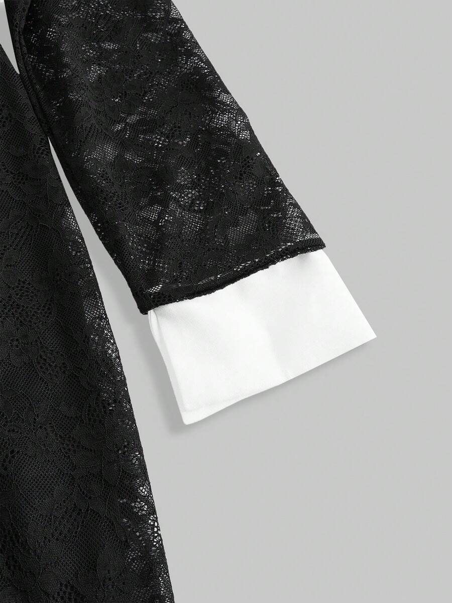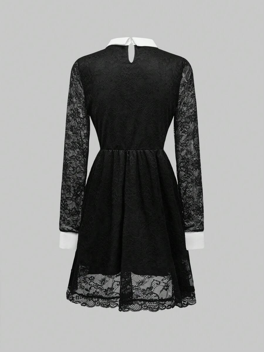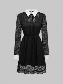 Robe courte gothique pour femme avec contraste de dentelle à la taille et à l'ourlet pour soirée