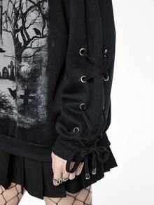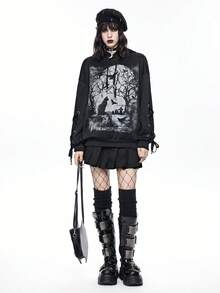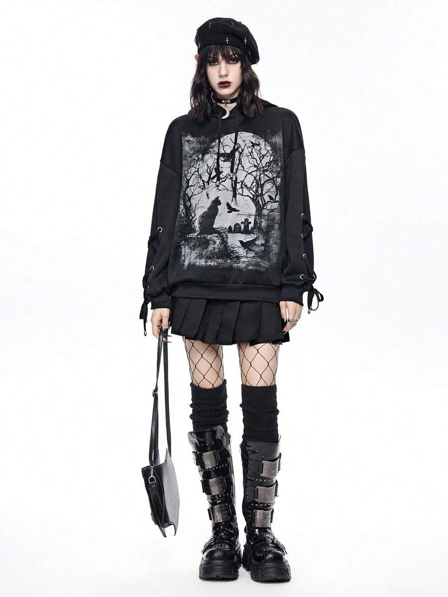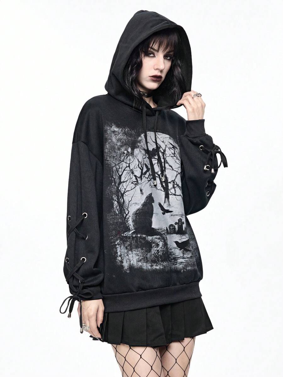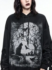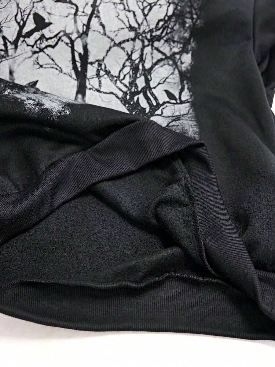 sweat-shirt à capuche ample gothique, corbeau noir, chat noir, forêt pour femmes, doublé thermique