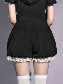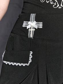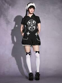 Poupée gothique sombre en dentelle patchwork, pendentif croix en métal, short lanterne