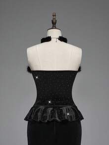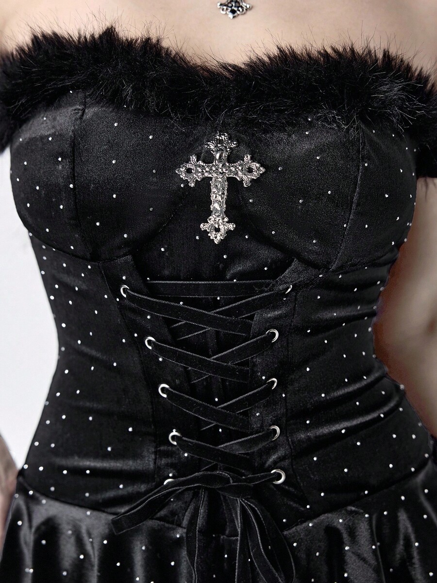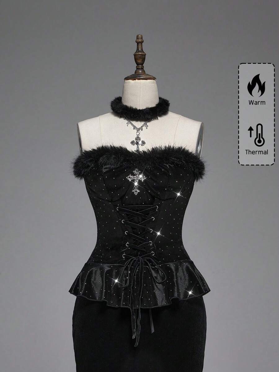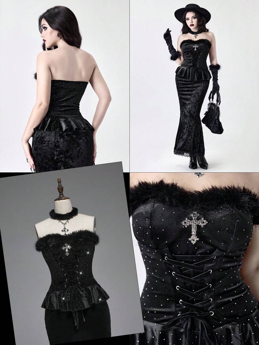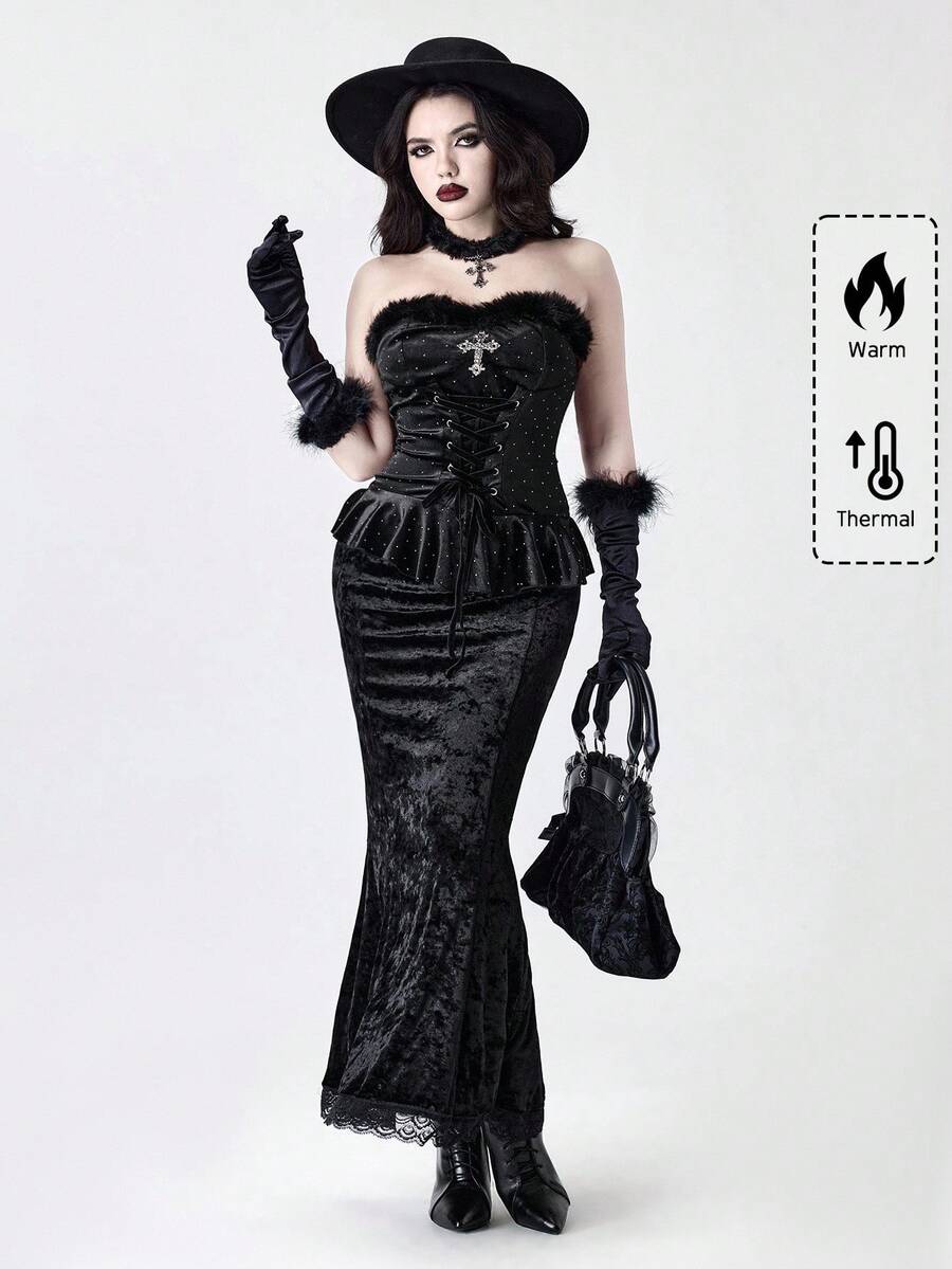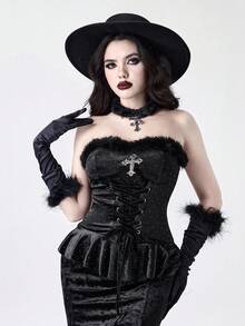 Bandeau en velours noir gothique avec patchwork et bordure en fourrure