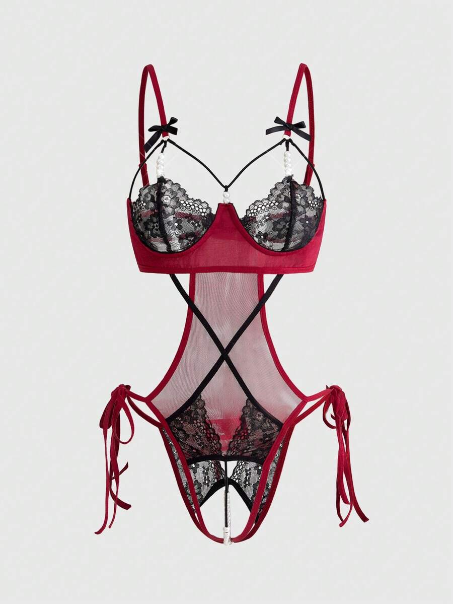 Combinaison sexy en patchwork de faux perles et de dentelle gothique