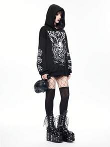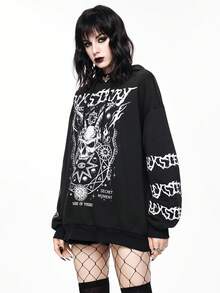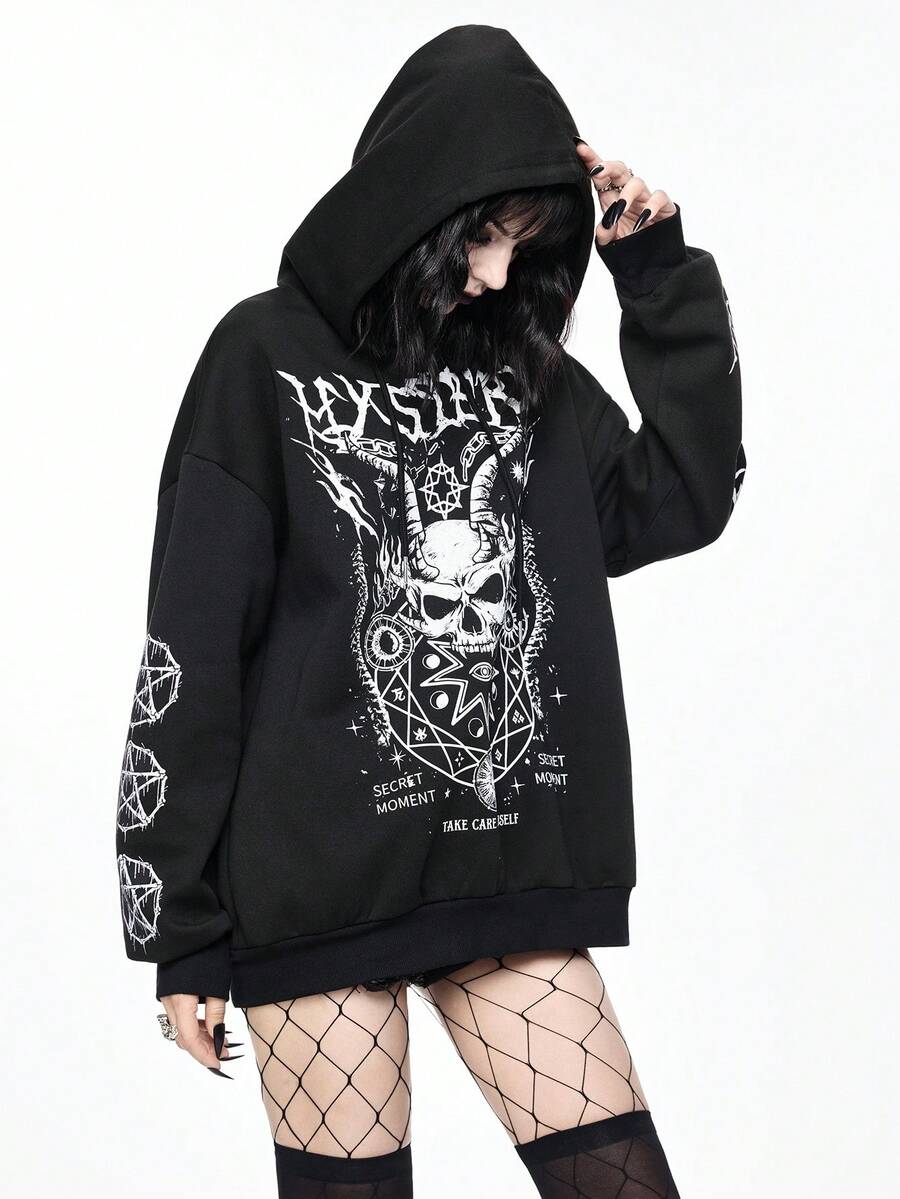Sweat-shirt ample à imprimé fluide tête de mouton gothique et horreur