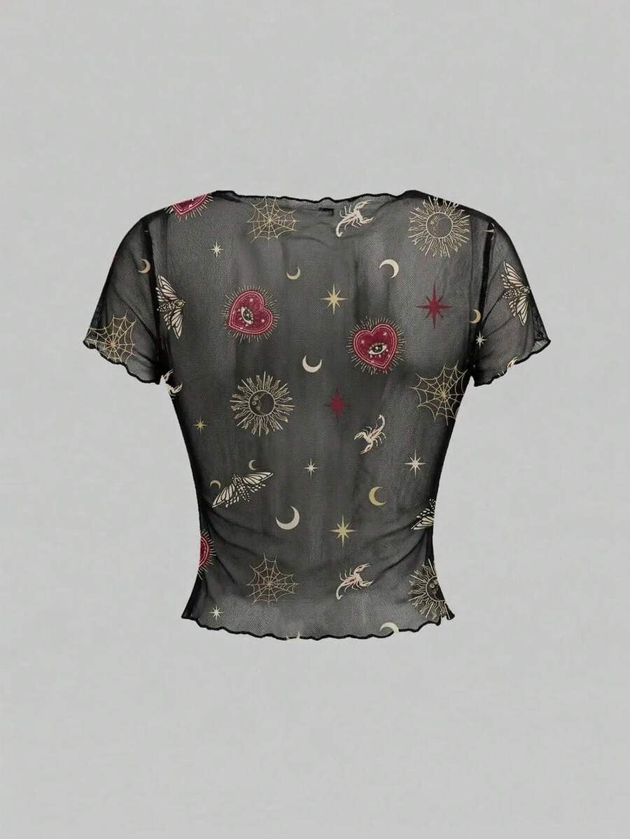 Blouse élégante d'été en maille transparente gothique avec manches courtes