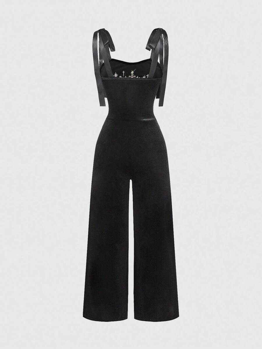 Body gothique romantique style Mori en dentelle avec strass, cristal en forme de larme et broderie d'étoile, col ras-du-cou, laçage pour femmes