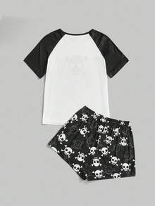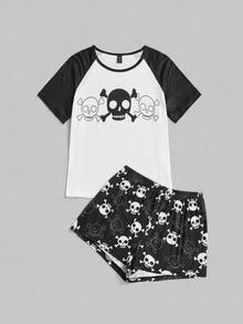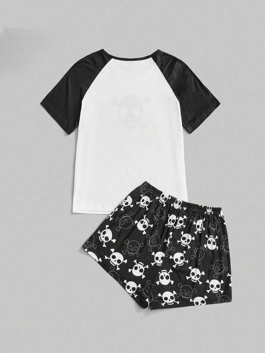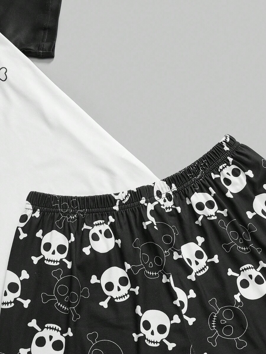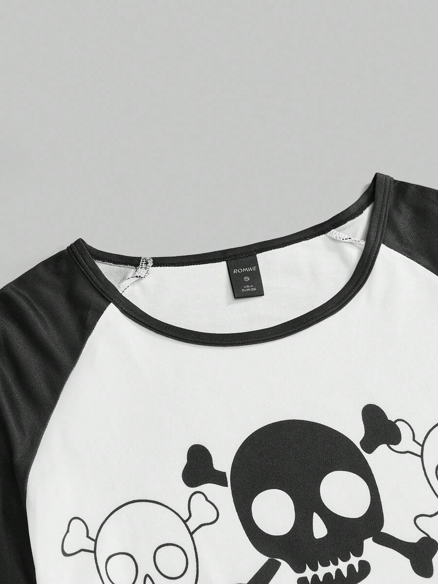 Ensemble de pyjama à manches raglan avec motif crâne gothique, Halloween