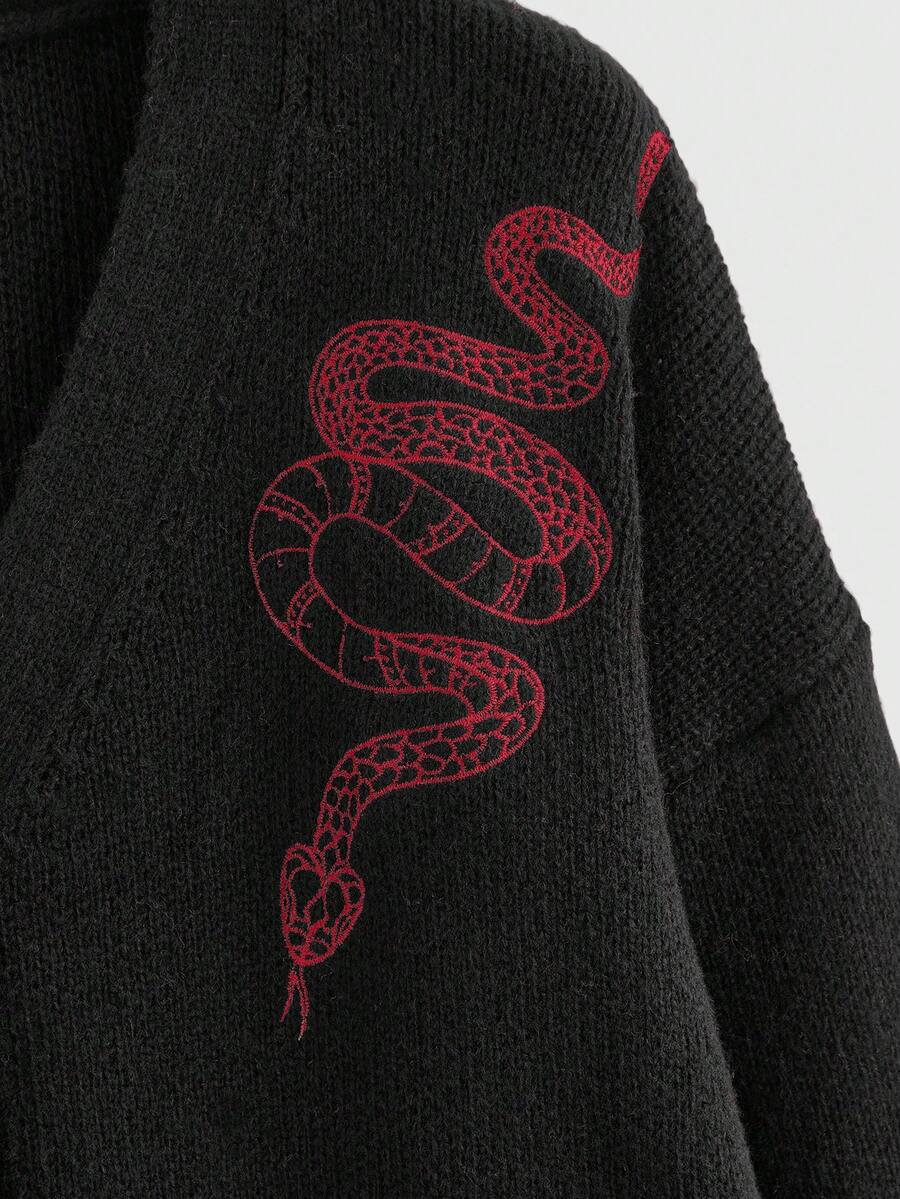 Cardigan ample à col en V avec broderie de serpent et de lune gothique