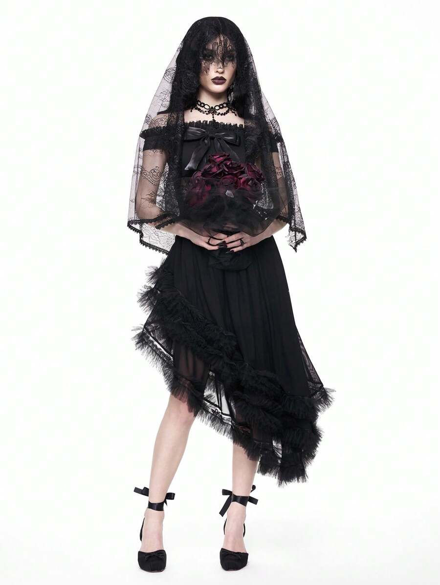 Jupe asymétrique en maille style gothique pour femmes
