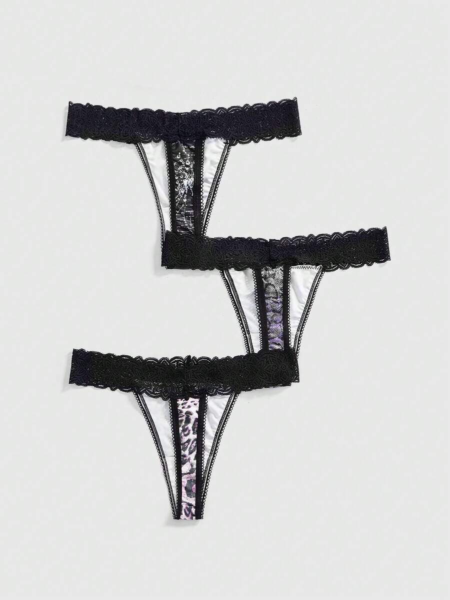 Culottes tanga gothiques avec motifs de croix en cristal, crâne, chauve-souris, imprimé léopard et dentelle toile d'araignée