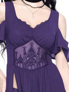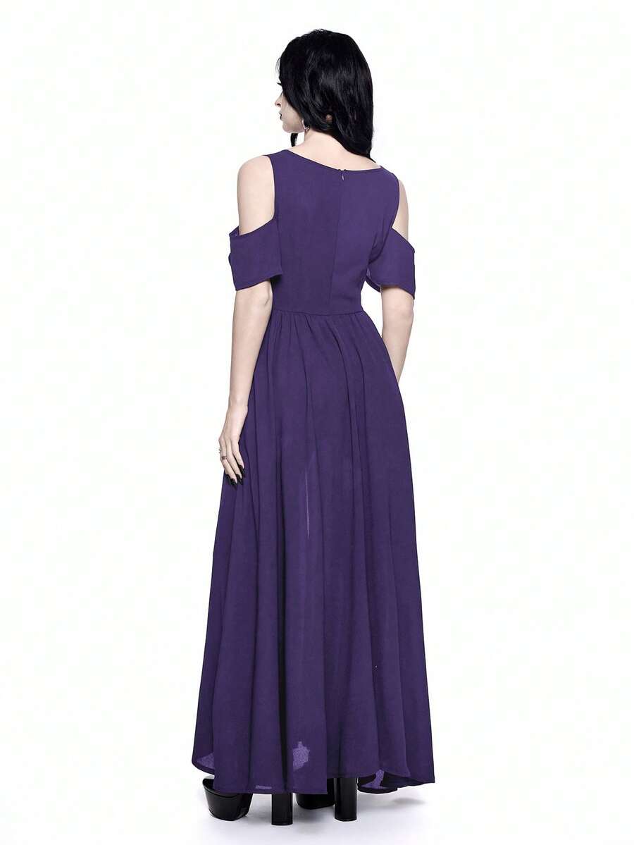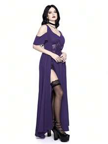 Robe gothique style broderie ajourée décolleté plongeant épaules dénudées et fente haute pour femme